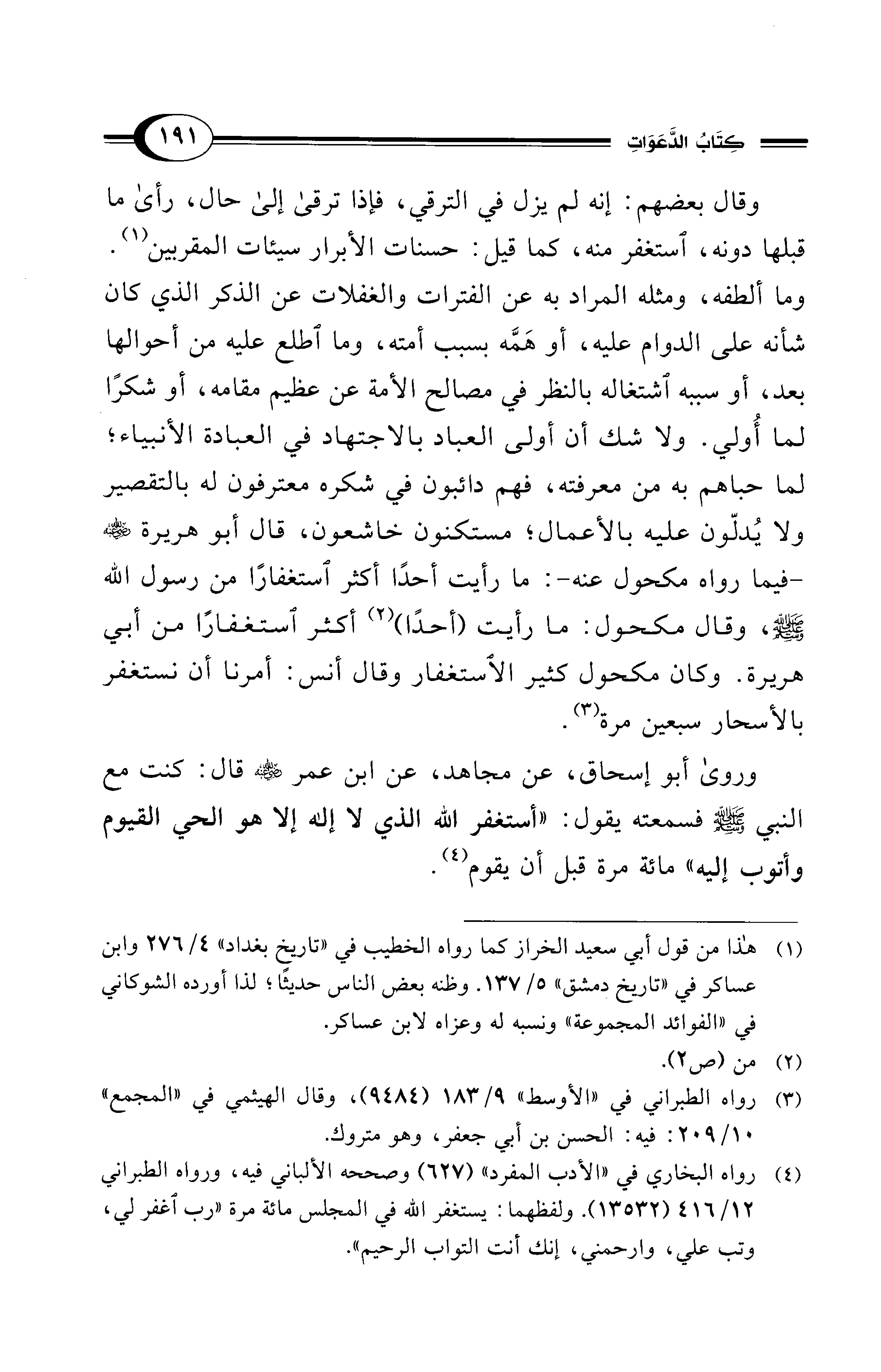 (¬4) رواه البخاري في "الأدب المفرد" (627) وصححه الألباني فيه، ورواه الطبراني 12/ 416 (13532). ولفظهما: يستغفر الله في المجلس مائة مرة "رب اغفر لي، وتب علي، وارحمني، إنك أنت التواب الرحيم".