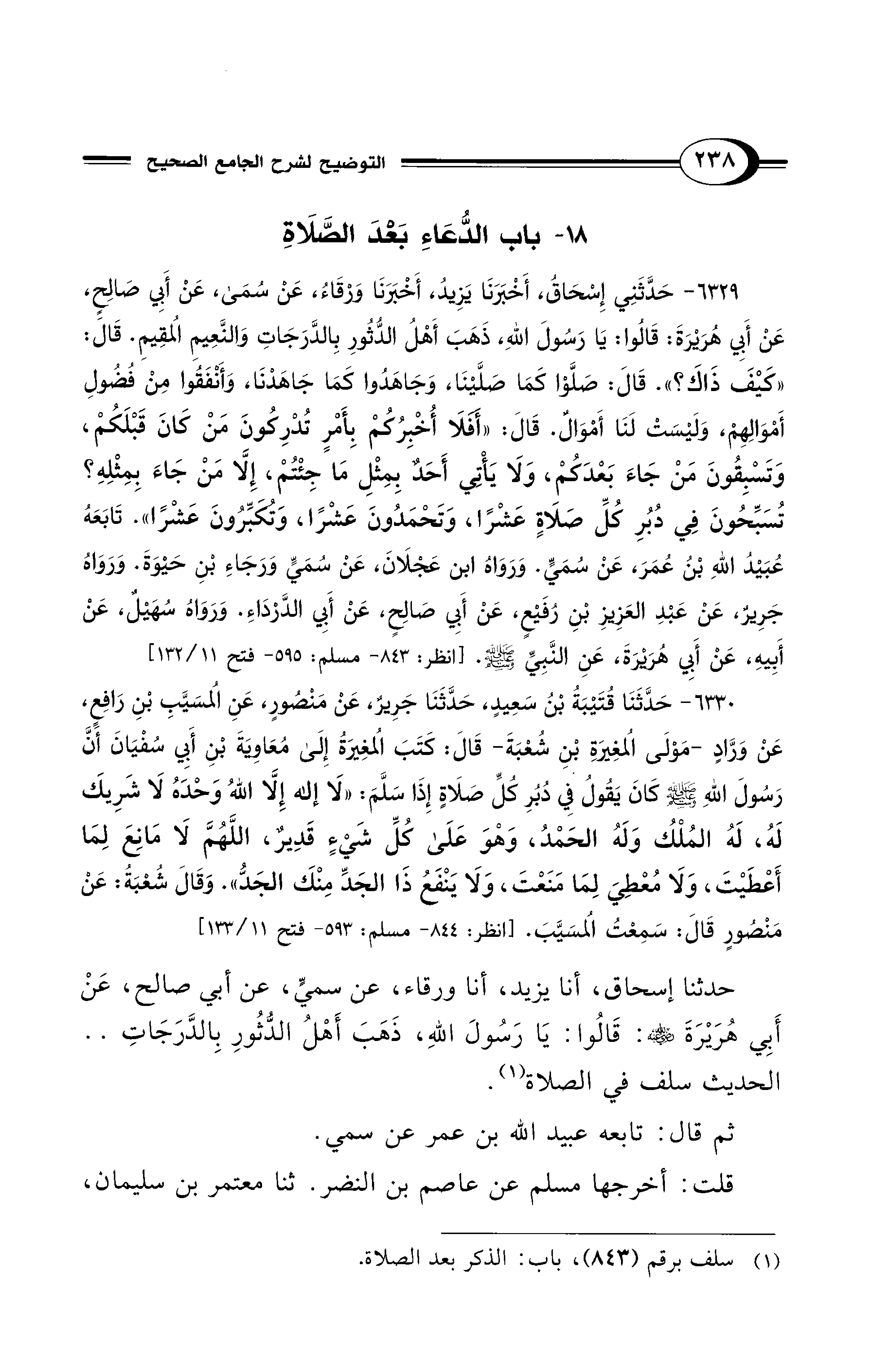 حدثنا إسحاق، أنا يزيد، أنا ورقاء، عن سميٍّ، عن أبي صالح، عَنْ أَبِي هُرَيْرَةَ - رضي الله عنه -: قَالُوا: يَا رَسُولَ اللهِ، ذَهَبَ أَهْلُ الدُّثُورِ بِالدَّرَجَاتِ .. الحديث سلف في الصلاة (¬1).
