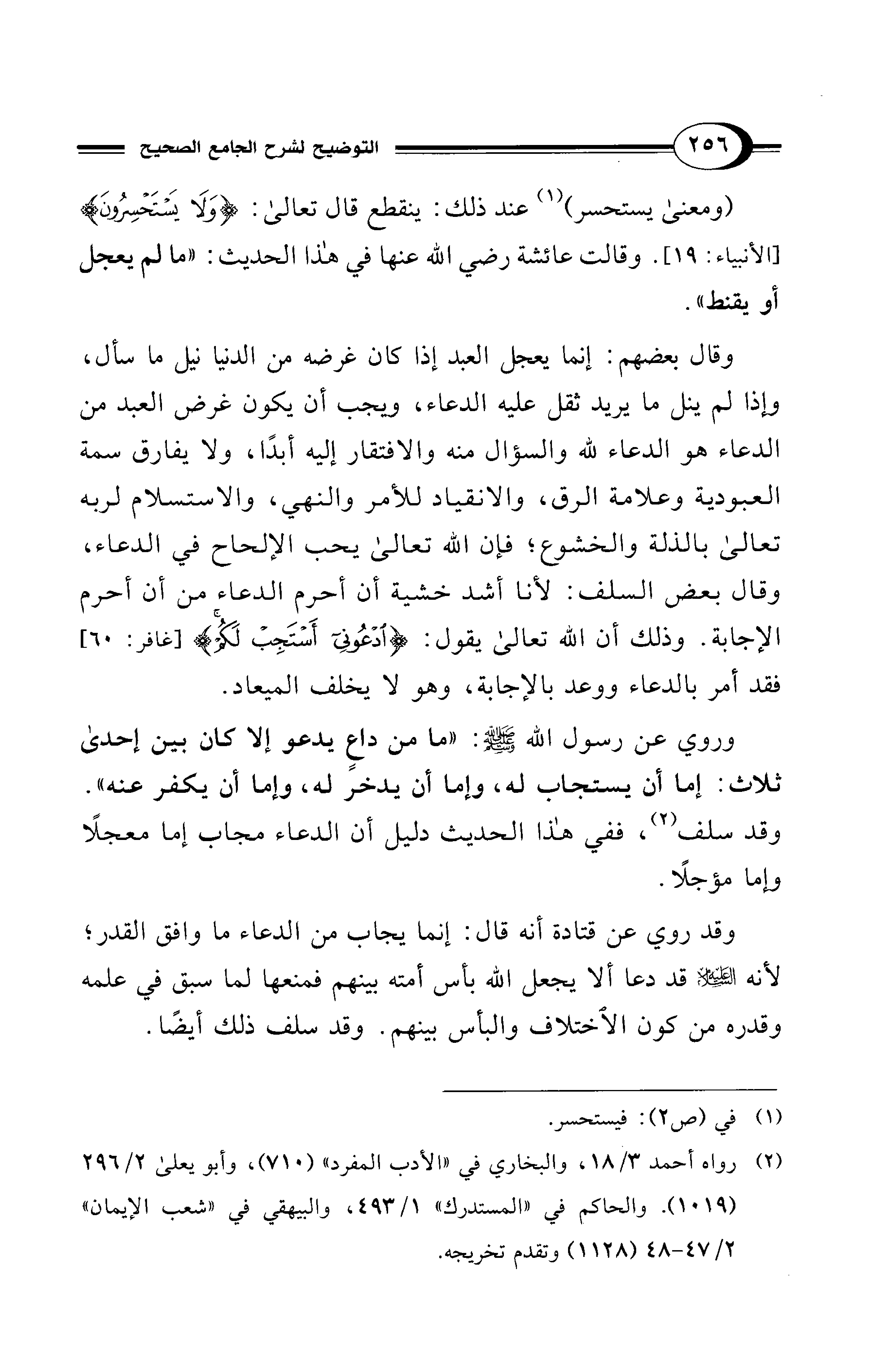 وقال بعضهم: إنما يعجل العبد إذا كان غرضه من الدنيا نيل ما سأل، وإذا لم ينل ما يريد ثقل عليه الدعاء، ويجب أن يكون غرض العبد من الدعاء هو الدعاء لله والسؤال منه والافتقار إليه أبدًا، ولا يفارق سمة العبودية وعلامة الرق، والانقياد للأمر والنهي، والاستسلام لربه تعالى بالذلة والخشوع؛ فإن الله تعالى يحب الإلحاح في الدعاء، وقال بعض السلف: لأنا أشد خشية أن أحرم الدعاء من أن أحرم الإجابة. وذلك أن الله تعالى يقول: {ادْعُونِي أَسْتَجِبْ لَكُمْ} [غافر: 60] فقد أمر بالدعاء ووعد بالإجابة، وهو لا يخلف الميعاد.
