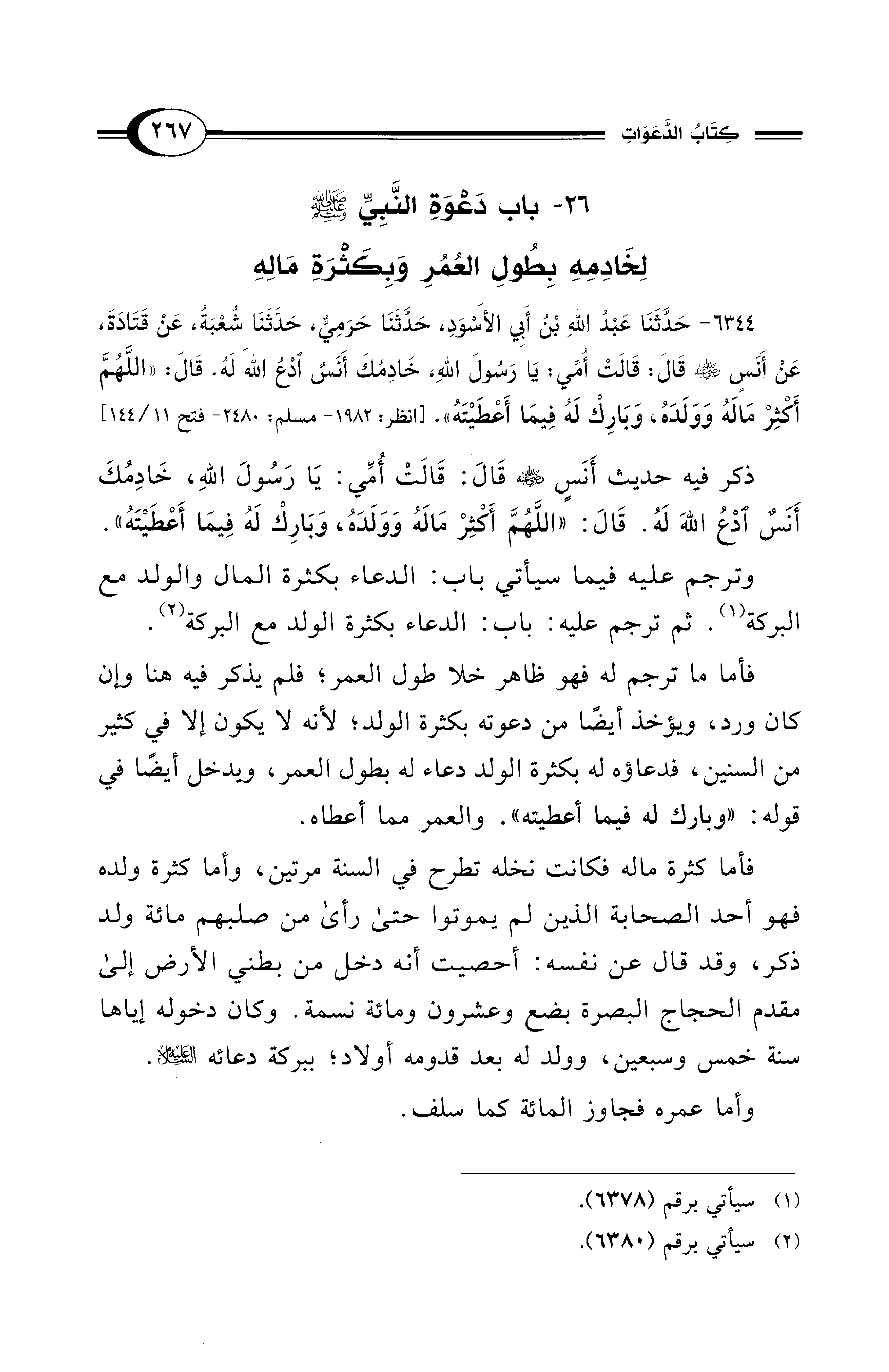 26 - باب دَعْوَةِ النَّبِيِّ - صلى الله عليه وسلم - لِخَادِمِهِ بِطُولِ العُمُرِ وَبِكَثْرَةِ مَالِهِ