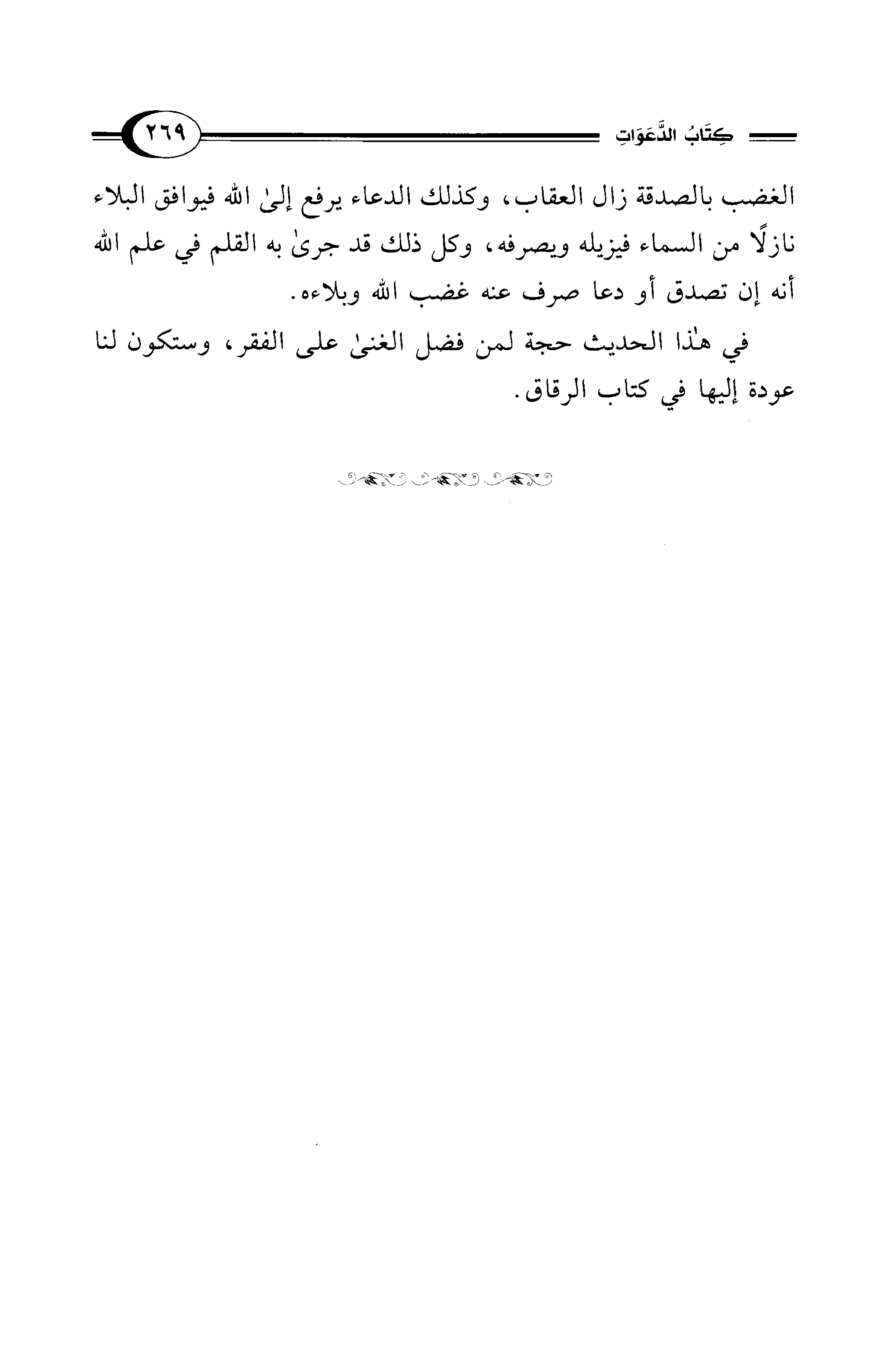 الغضب بالصدقة زال العقاب، وكذلك الدعاء يرفع إلى الله فيوافق البلاء نازلًا من السماء فيزيله ويصرفه، وكل ذلك قد جرى به القلم في علم الله أنه إن تصدق أو دعا صرف عنه غضب الله وبلاءه.