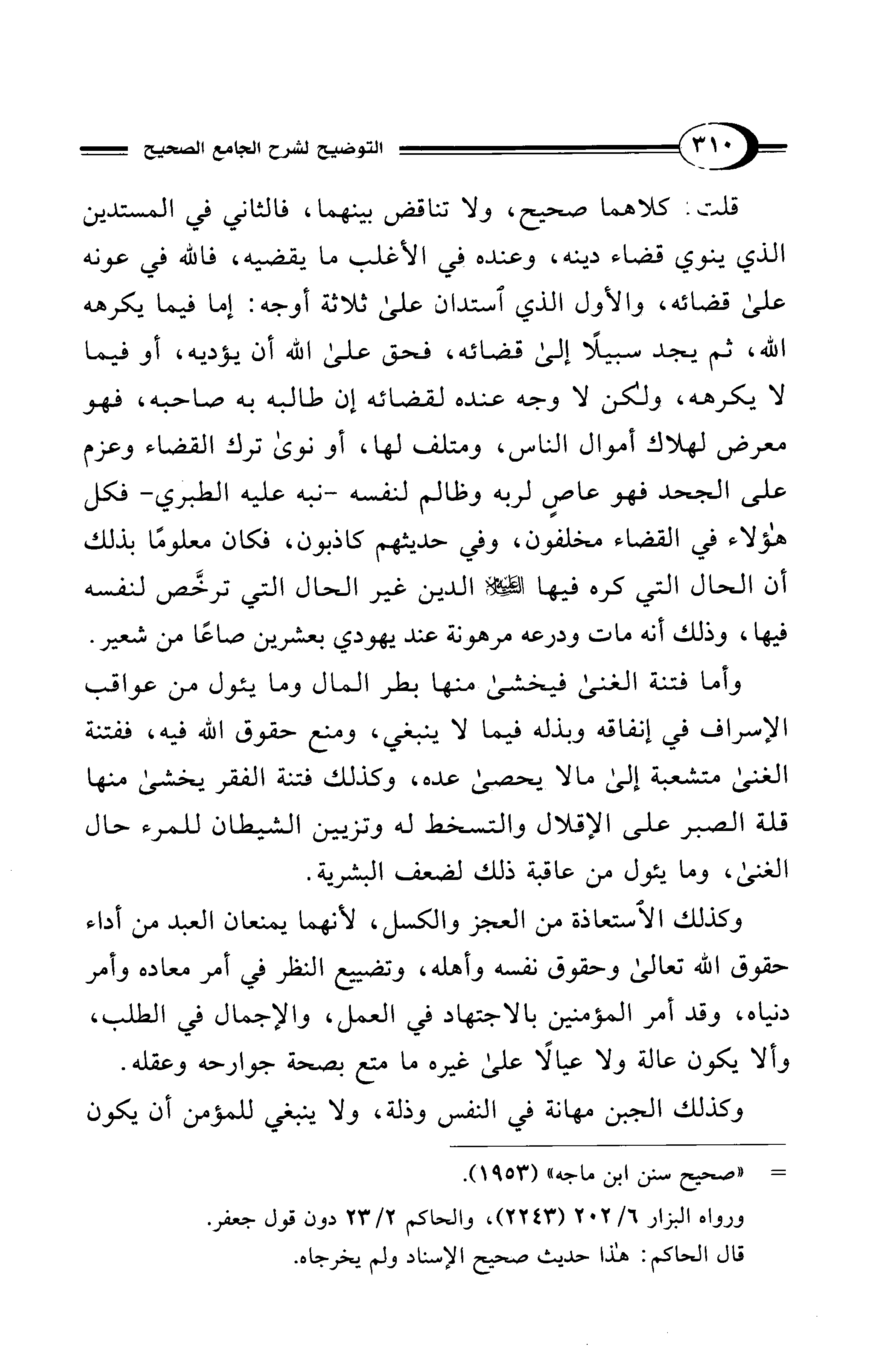 وكذلك الاستعاذة من العجز والكسل؛ لأنهما يمنعان العبد من أداء حقوق الله تعالى وحقوق نفسه وأهله، وتضييع النظر في أمر معاده وأمر دنياه، وقد أمر المؤمنين بالاجتهاد في العمل، والإجمال في الطلب، وألا يكون عالة ولا عيالًا على غيره ما متع بصحة جوارحه وعقله.
