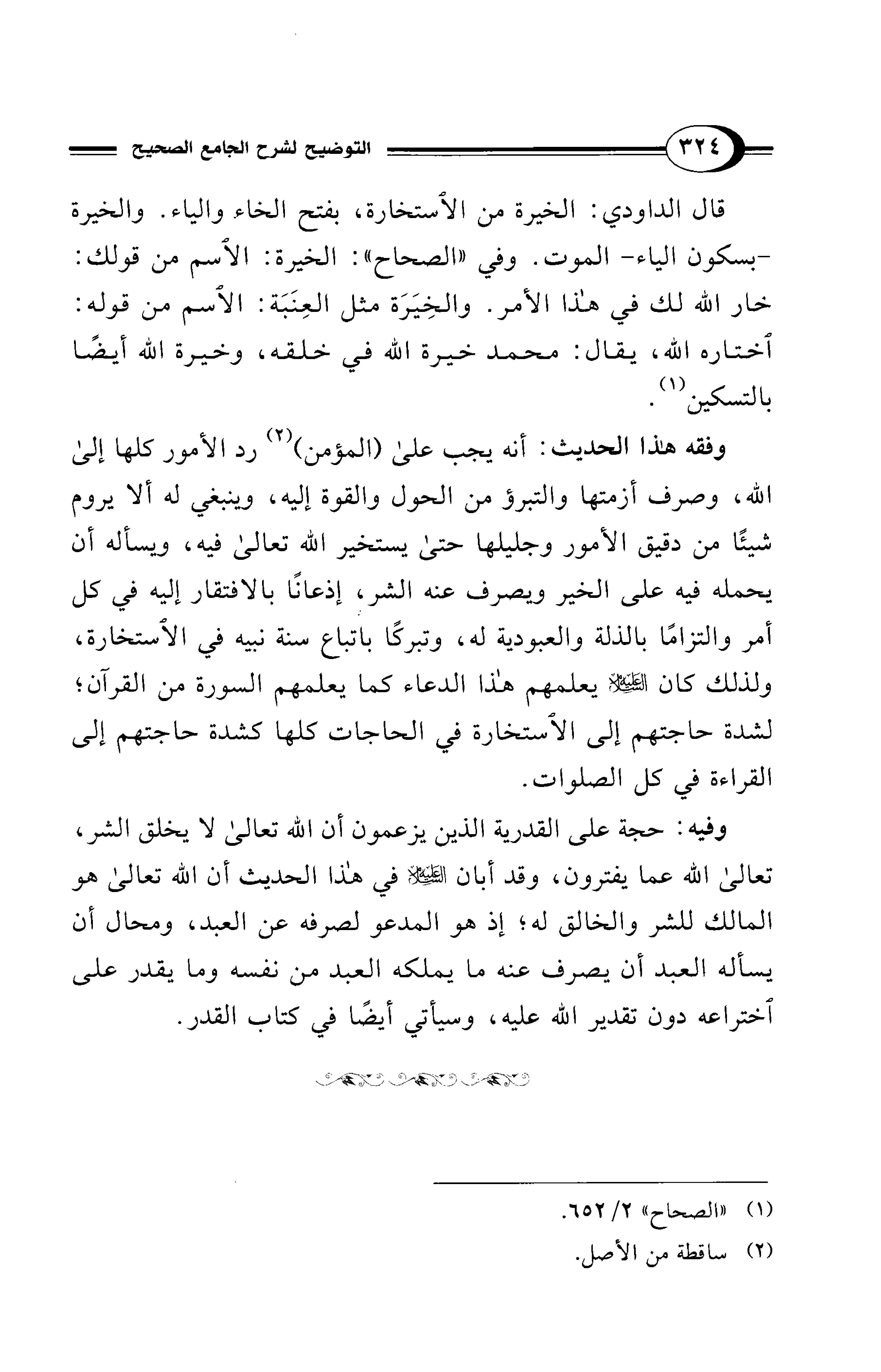 وفقه هذا الحديث: أنه يجب على (المؤمن) (¬2) رد الأمور كلها إلى الله، وصرف أزمتها والتبرؤ من الحول والقوة إليه، وينبغي له ألا يروم شيئًا من دقيق الأمور وجليلها حتى يستخير الله تعالى فيه، ويسأله أن يحمله فيه على الخير ويصرف عنه الشر، إذعانًا بالافتقار إليه في كل أمر والتزامًا بالذلة والعبودية له، وتبركًا باتباع سنة نبيه في الاستخارة، ولذلك كان - عليه السلام - يعلمهم هذا الدعاء كما يعلمهم السورة من القرآن؛ لشدة حاجتهم إلى الاستخارة في الحاجات كلها كشدة حاجتهم إلى القراءة في كل الصلوات.