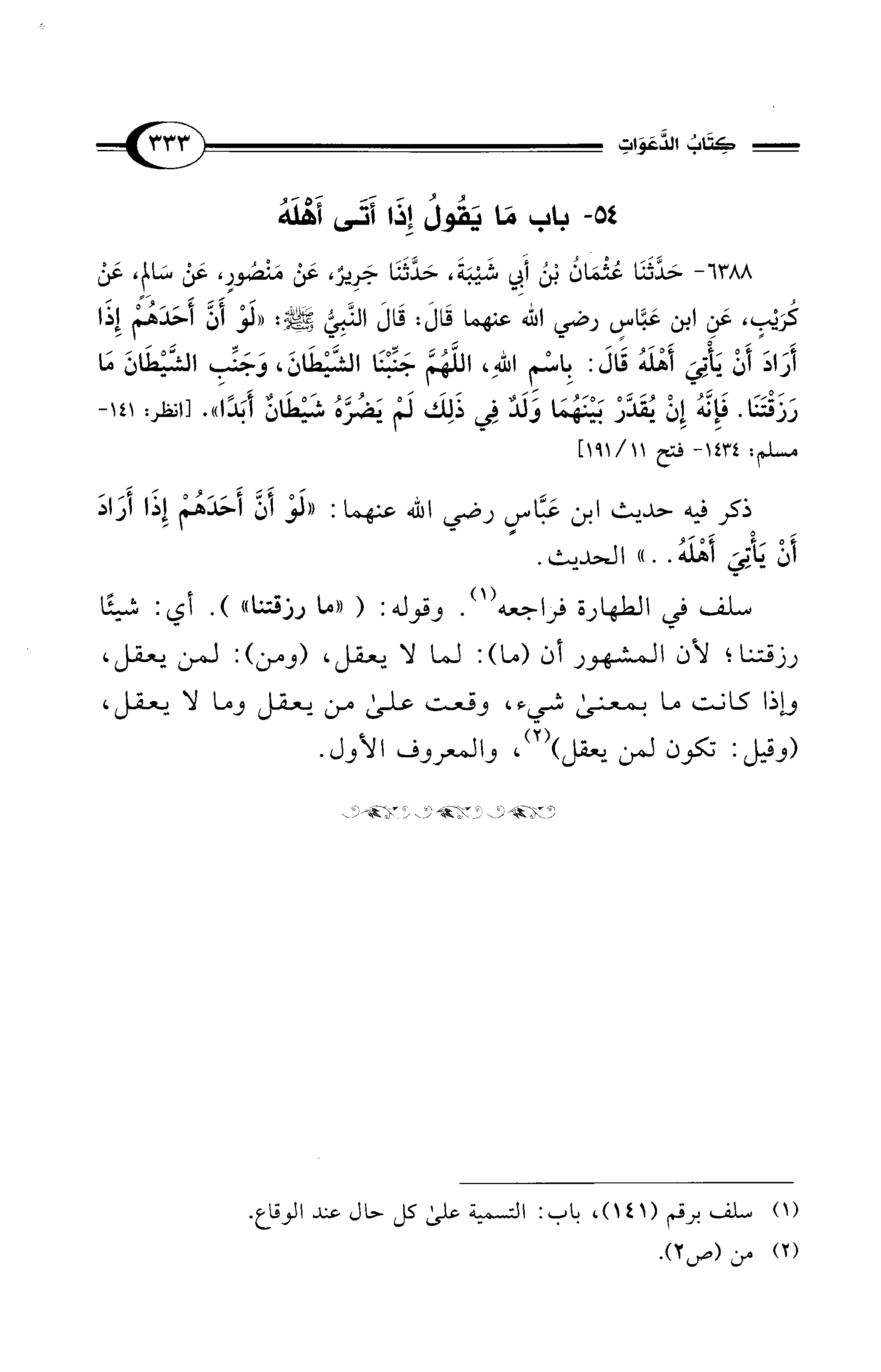 54 - باب مَا يَقُولُ إِذَا أَتَى أَهْلَهُ