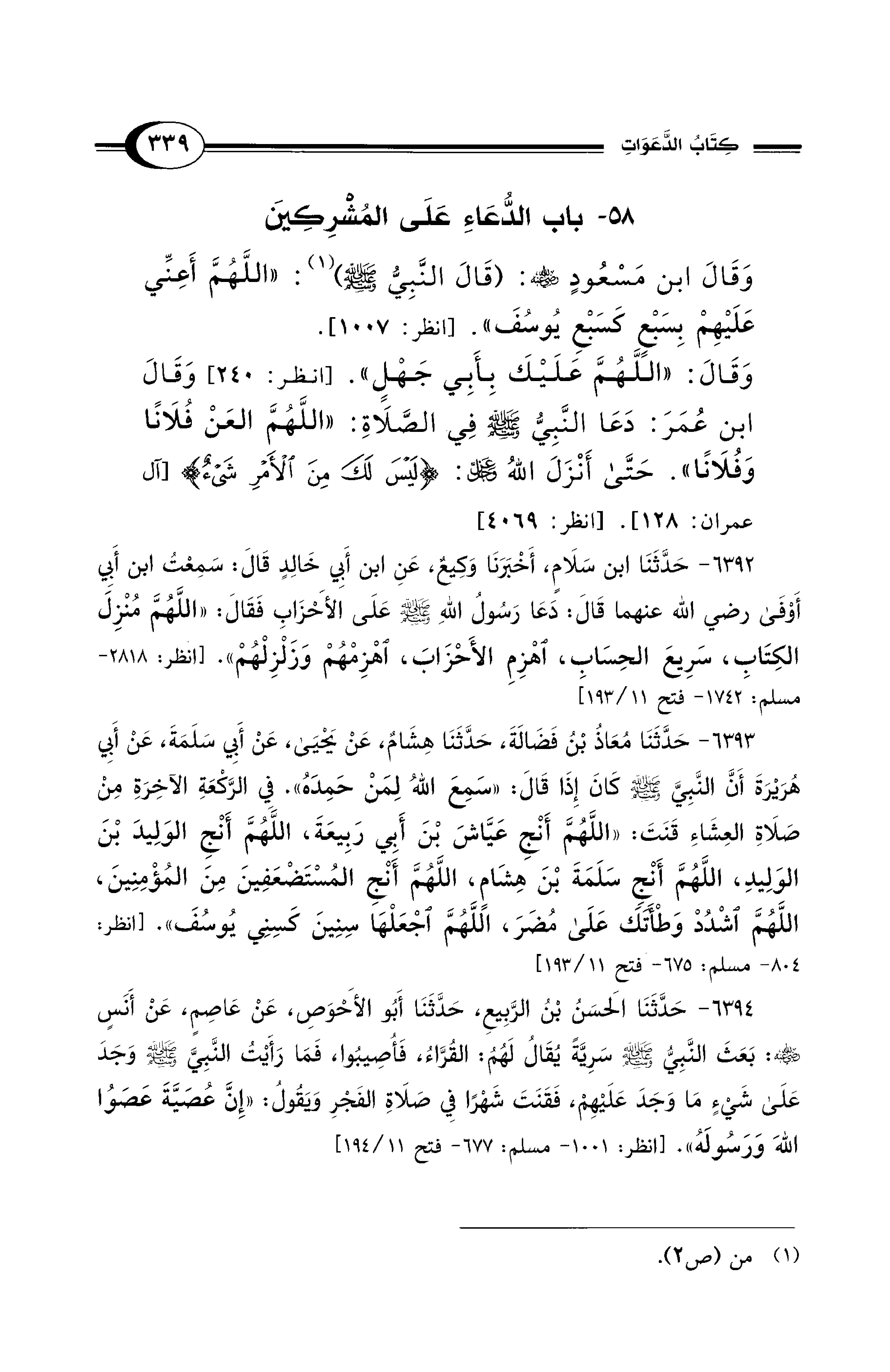 58 - باب الدُّعَاءِ عَلَى المُشْرِكِينَ