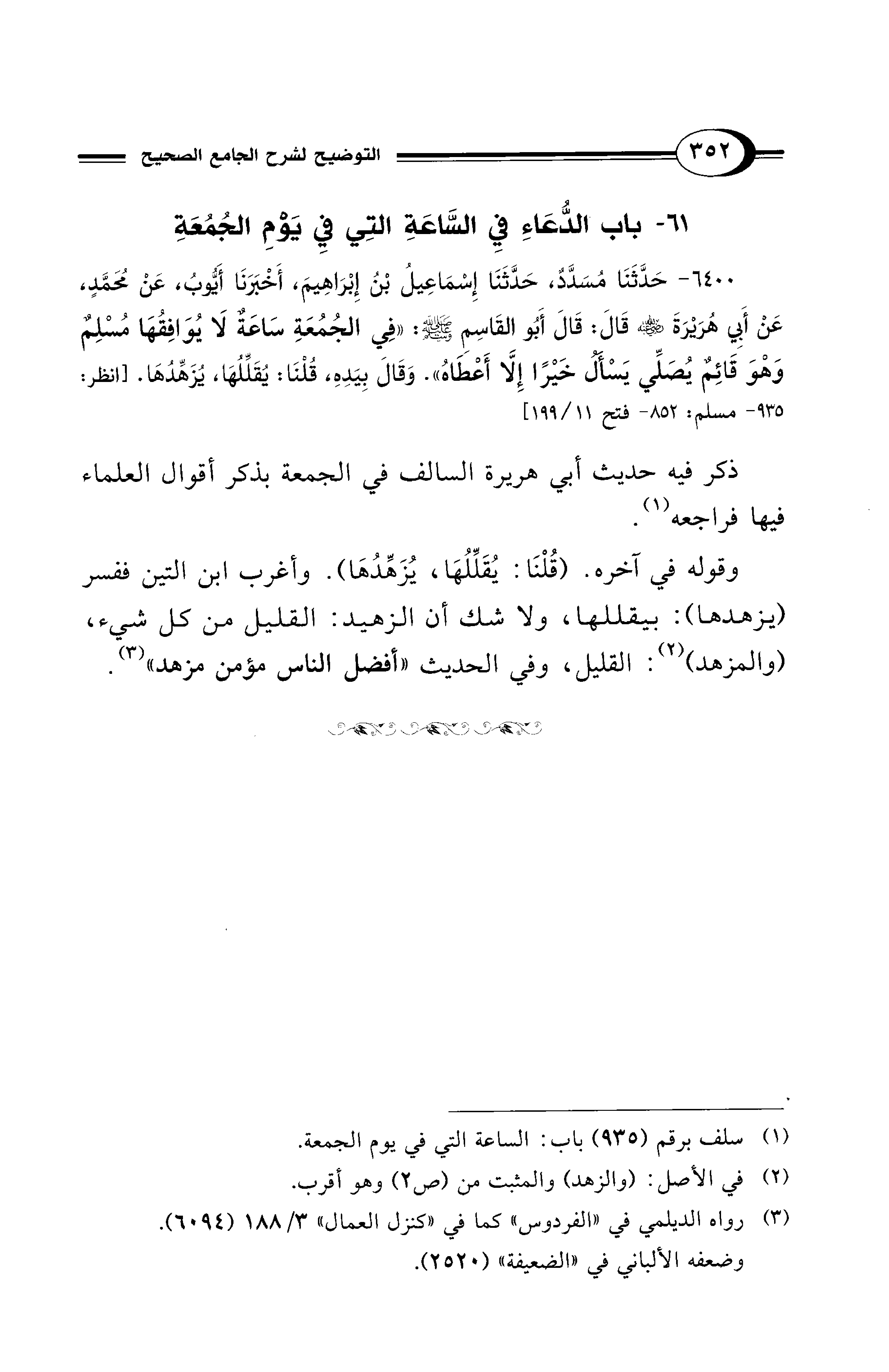 (¬1) سلف برقم (935) باب: الساعة التي في يوم الجمعة.