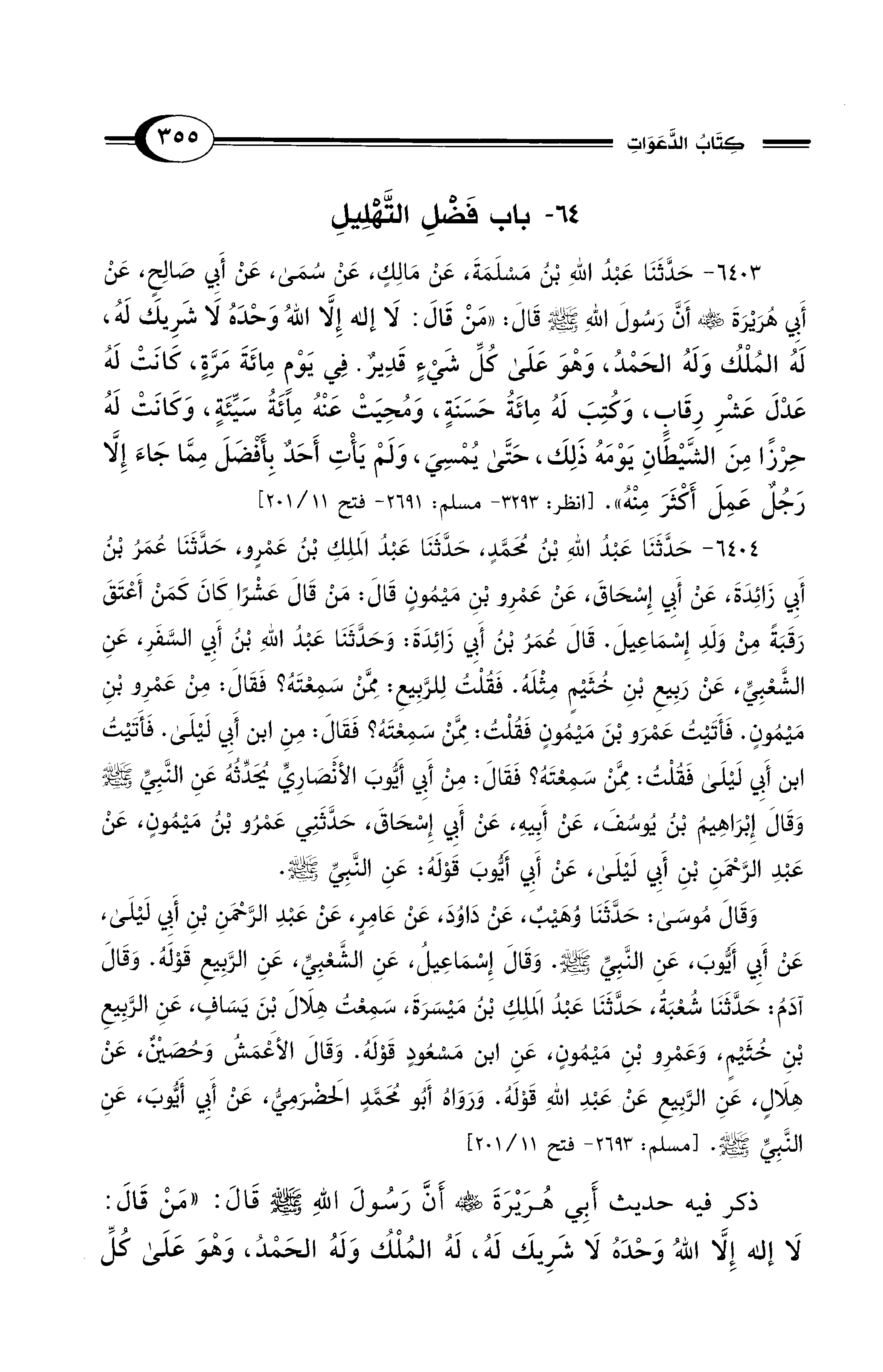 64 - باب فَضْلِ التَّهْلِيلِ