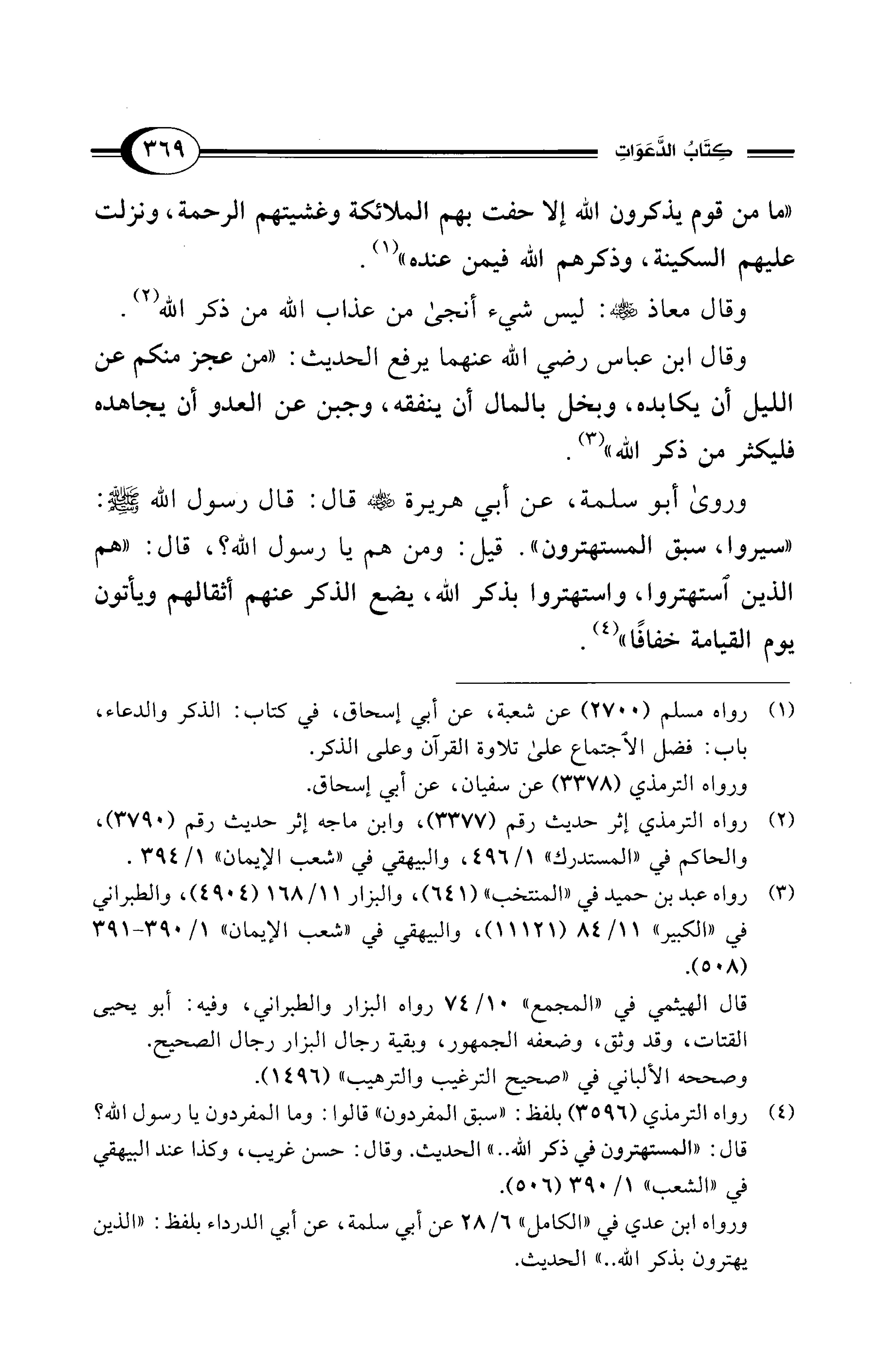 (¬4) رواه الترمذي (3596) بلفظ: "سبق المفردون" قالوا: وما المفردون يا رسول الله؟ قال: "المستهترون في ذكر الله .. " الحديث. وقال: حسن غريب، وكذا عند البيهقي في "الشعب" 1/ 390 (506).