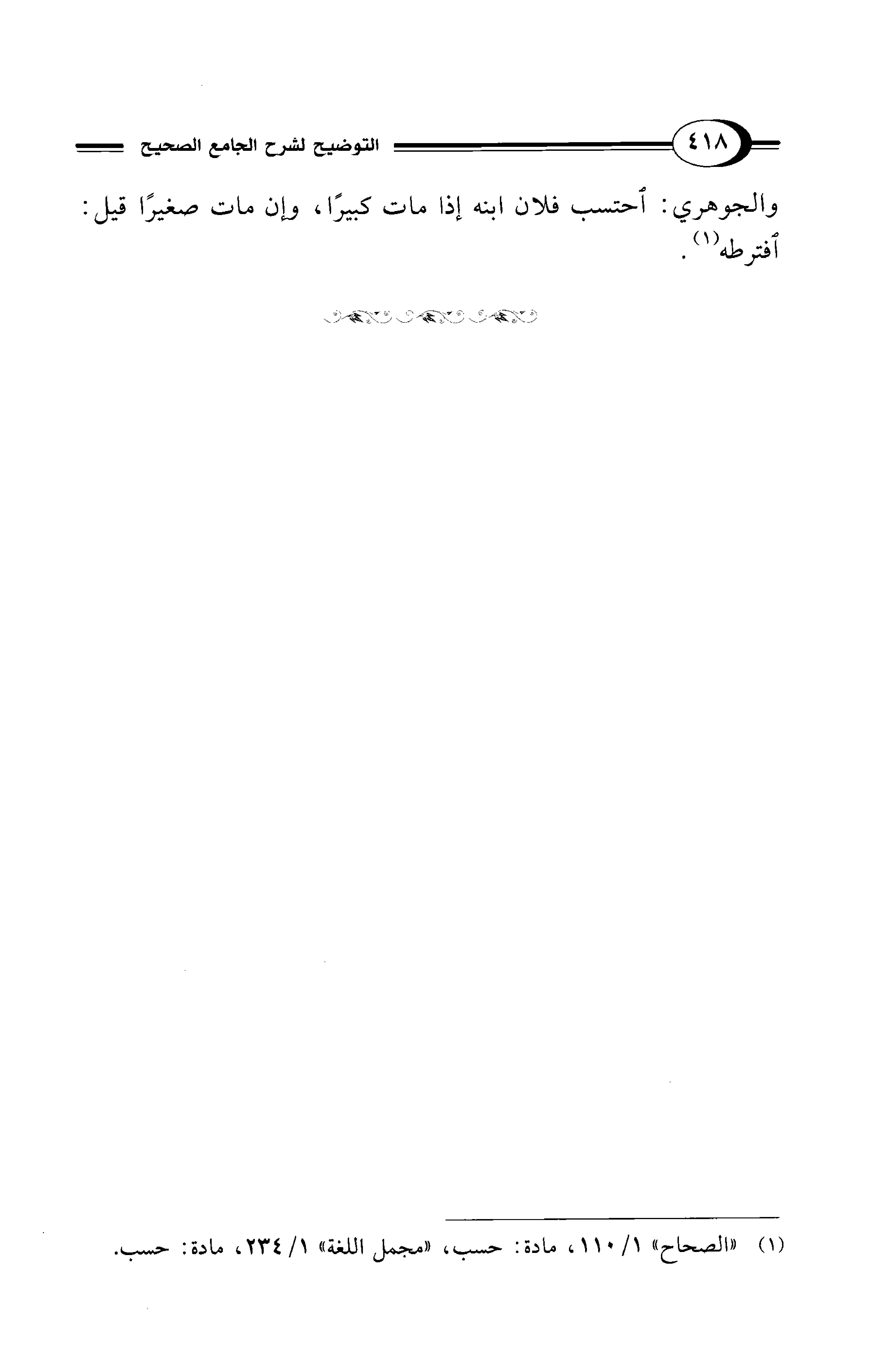(¬1) "الصحاح" 1/ 110، مادة: حسب، "مجمل اللغة" 1/ 234، مادة: حسب.