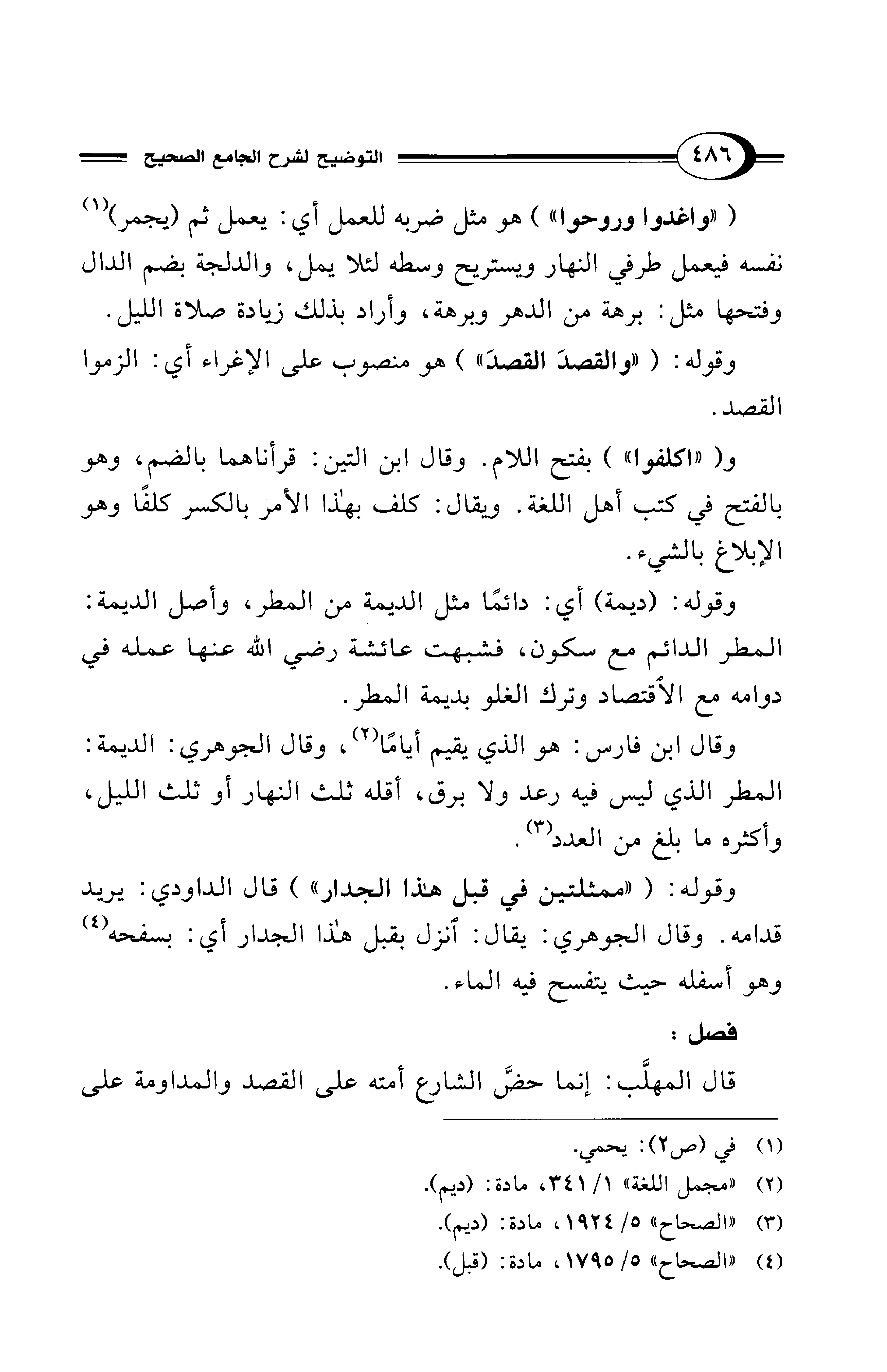 قال المهلَّب: إنما حضَّ الشارع أمته على القصد والمداومة على
