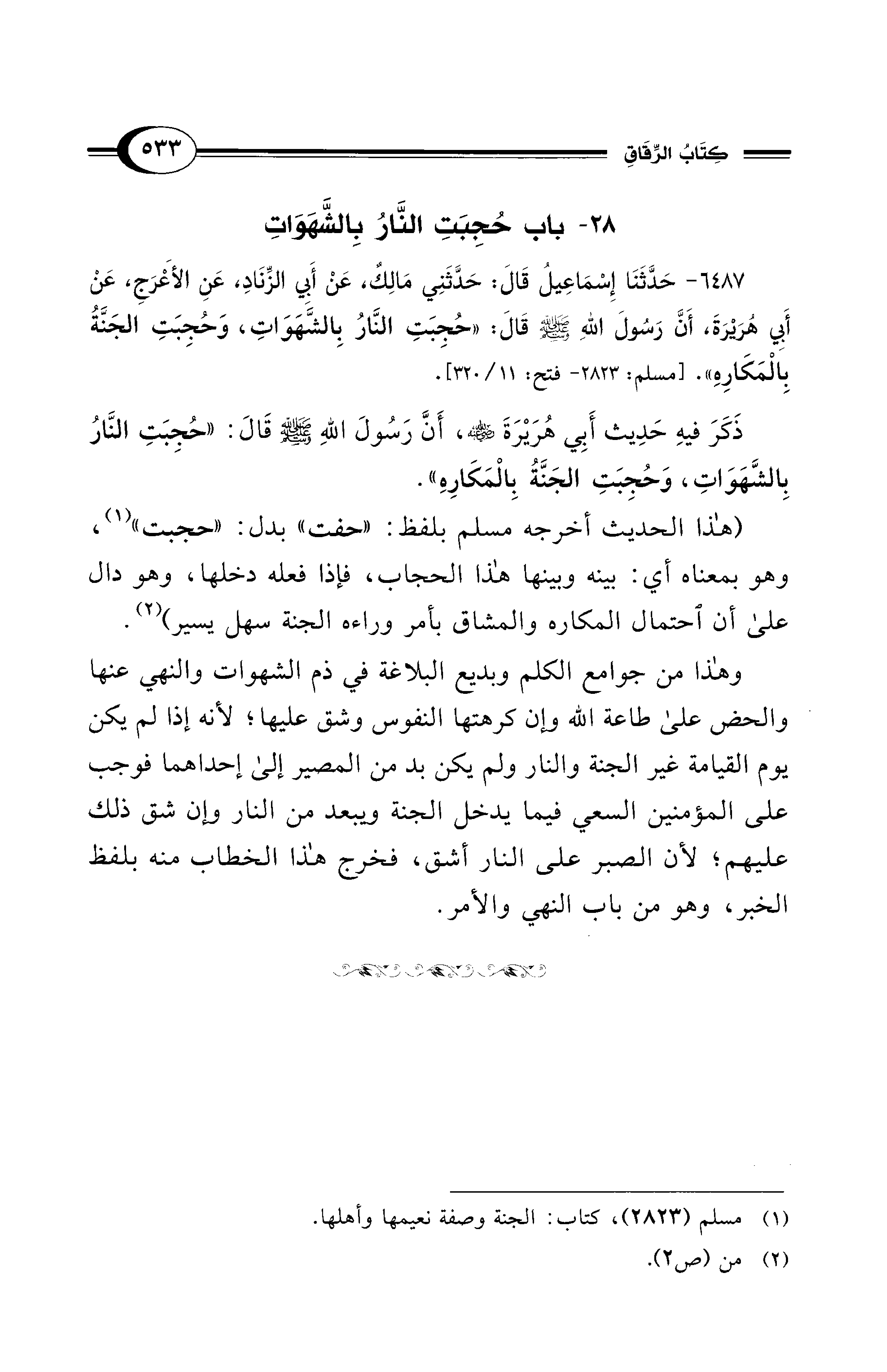 28 - باب حُجِبَتِ النَّارُ بِالشَّهَوَاتِ