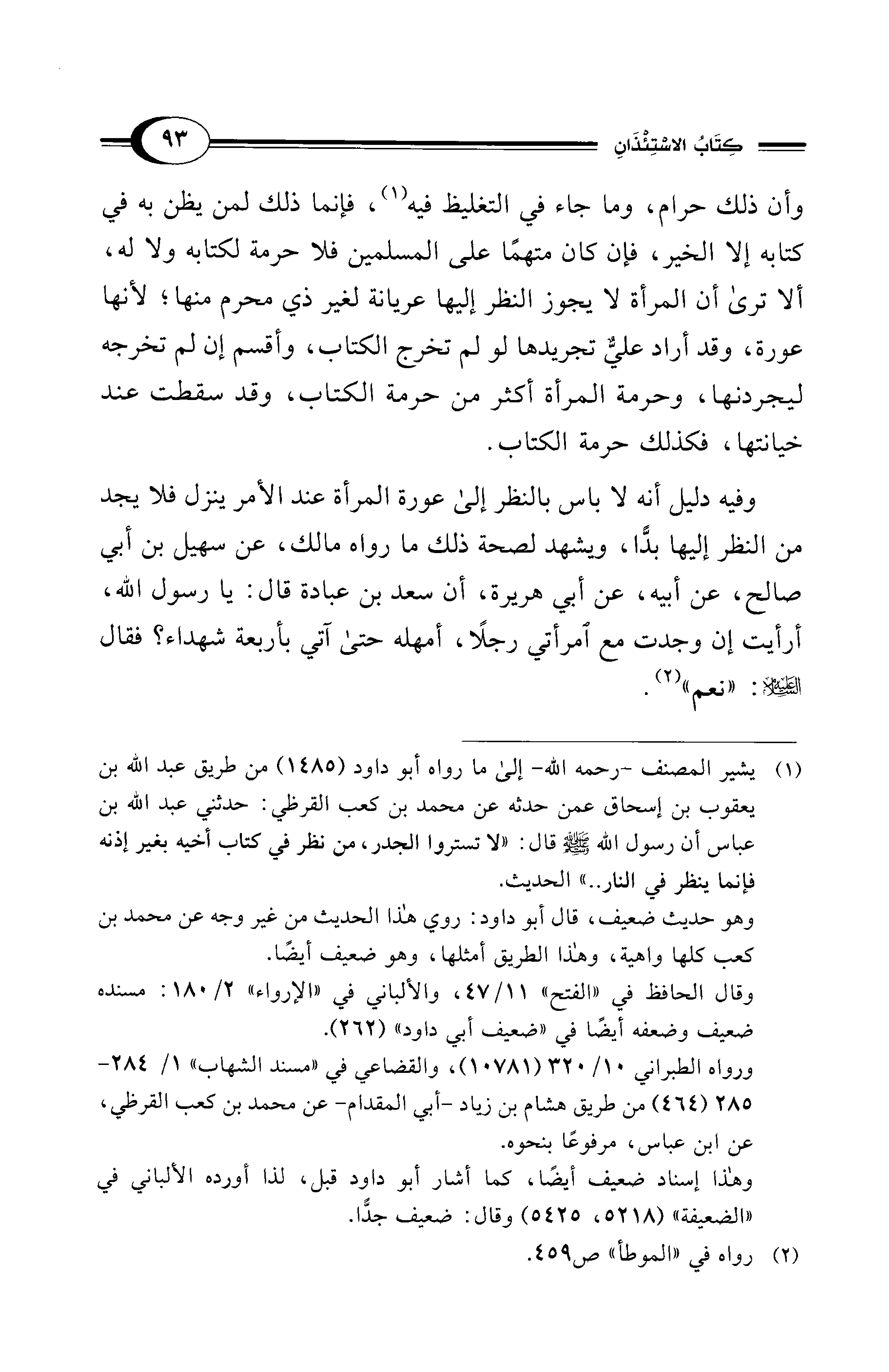 (¬1) يشير المصنف -رحمه الله- إلى ما رواه أبو داود (1485) من طريق عبد الله بن يعقوب بن إسحاق عمن حدثه عن محمد بن كعب القرظي: حدثني عبد الله بن عباس أن رسول الله - صلى الله عليه وسلم - قال: "لا تستروا الجدر، من نظر في كتاب أخيه بغير إذنه فإنما ينظر في النار .. " الحديث.