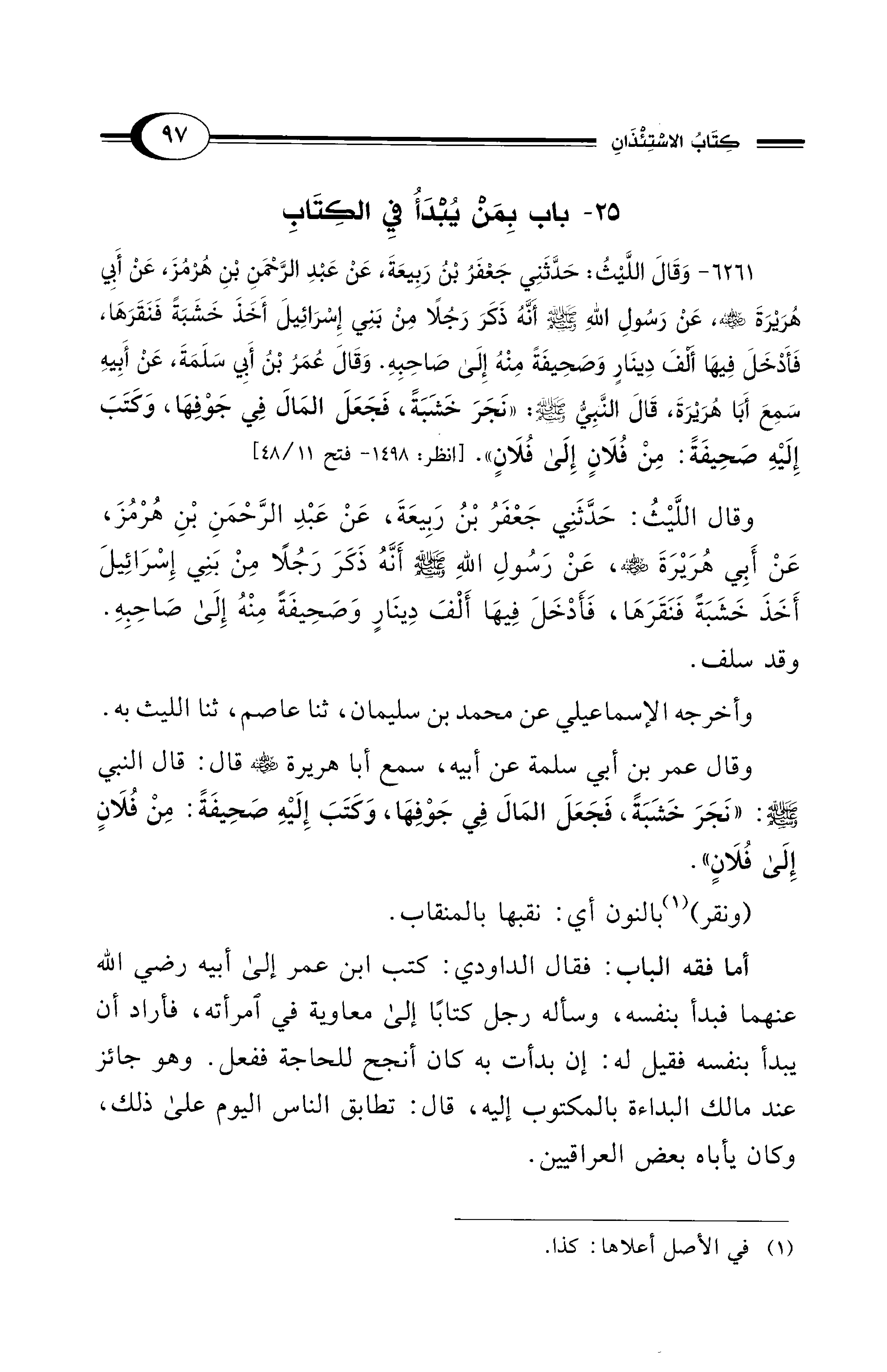 25 - باب بِمَنْ يُبْدَأُ فِي الكِتَابِ
