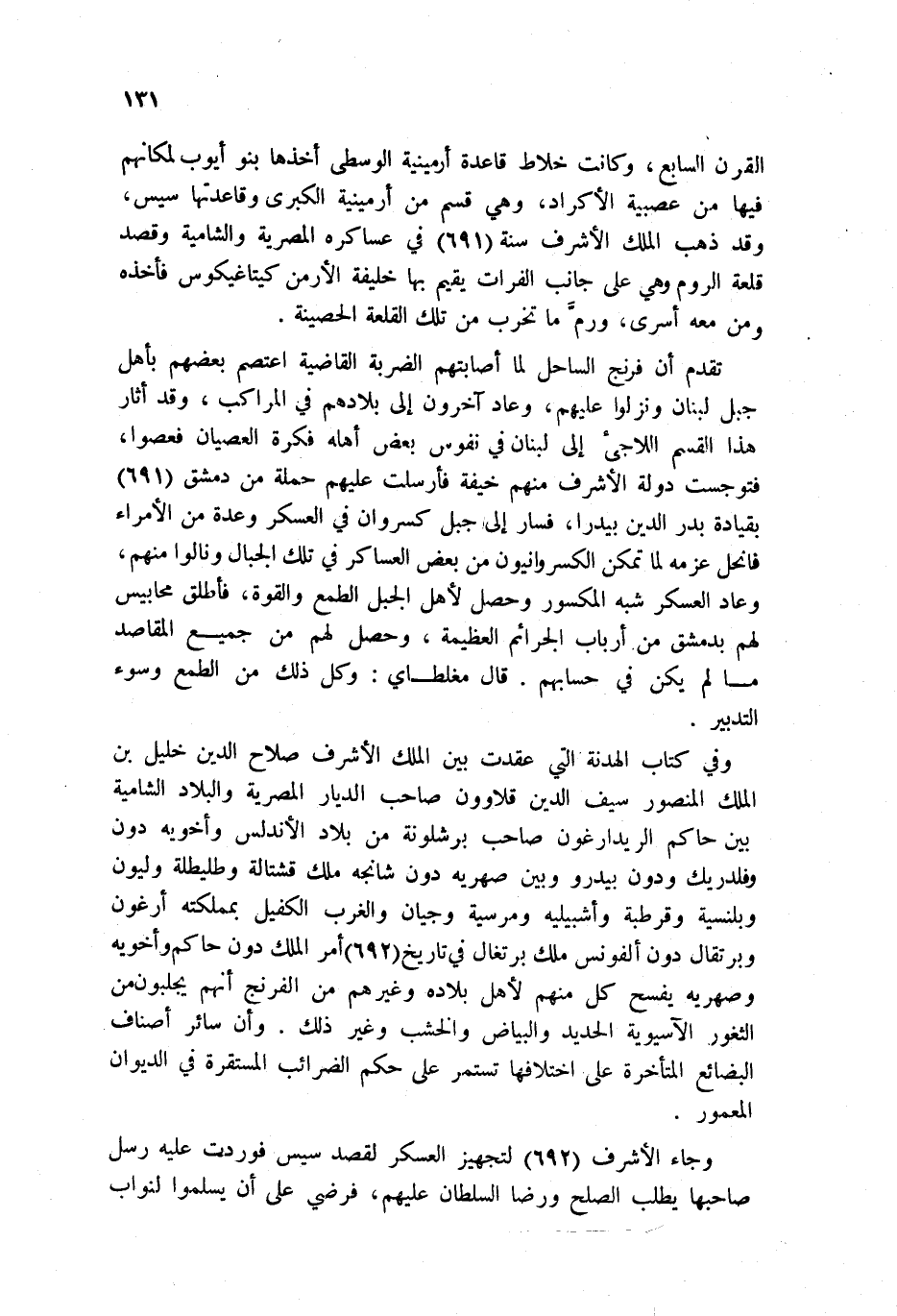 القرن السابع، وكانت خلاط قاعدة أرمينية الوسطى أخذها بنو أيوب لمكانهم فيها من عصبية الأكراد، وهي قسم من أرمينية الكبرى وقاعدتها سيس، وقد ذهب الملك الأشرف سنة 691 في عساكره المصرية والشامية وقصد قلعة الروم وهي على جانب