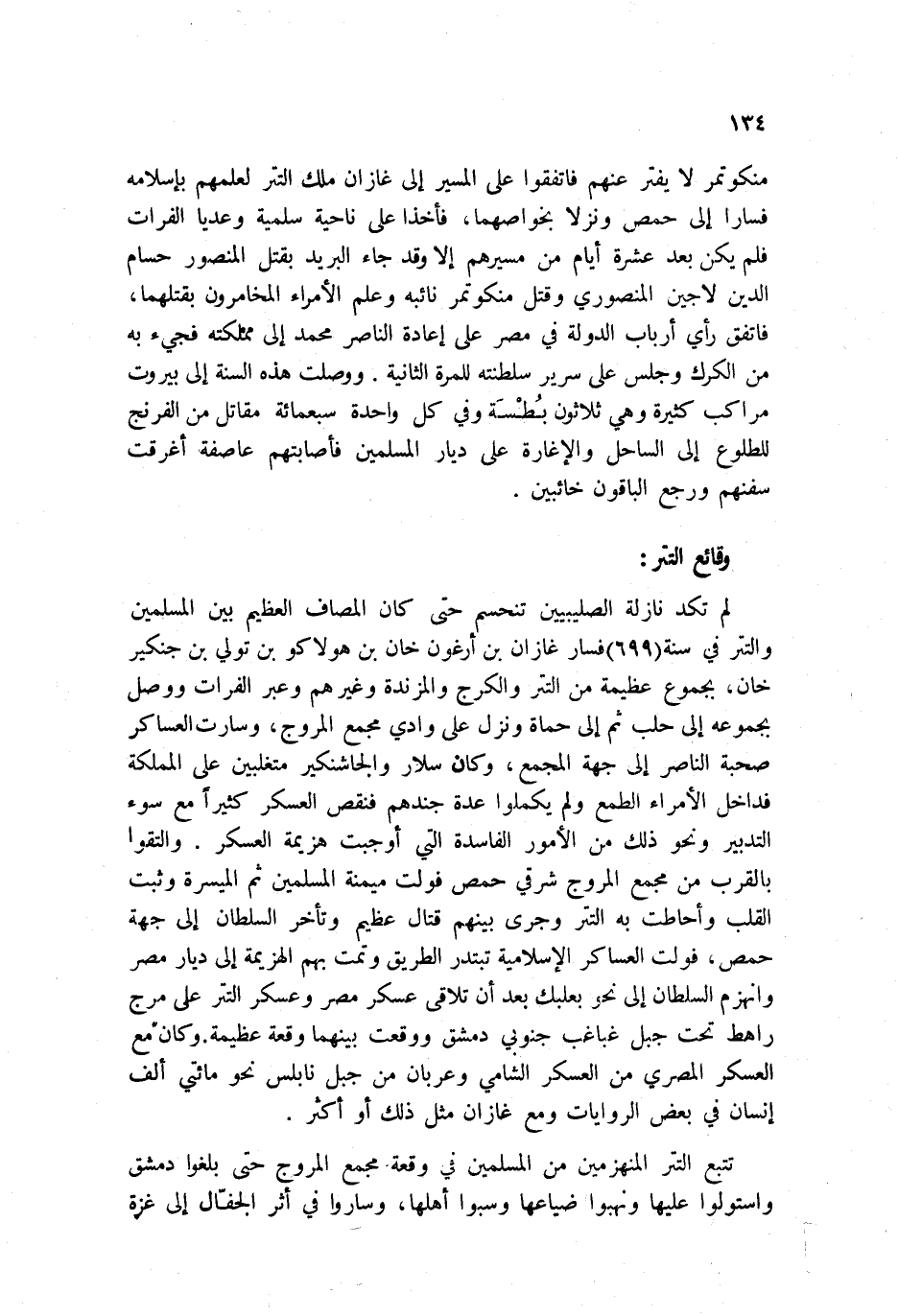 لم تكد نازلة الصليبيين تنحسم حتى كان المصاف العظيم بين المسلمين والتتر في سنة 699 فسار غازان بن أرغون خان بن هولاكو بن تولي بن جنكيز خان، بجموع عظيمة من التتر والكرج والمزندة وغيرهم وعبر الفرات ووصل بجموعه إلى حلب ثم إلى حماة ونزل على وادي مجمع المروج، وسارت العساكر صحبة