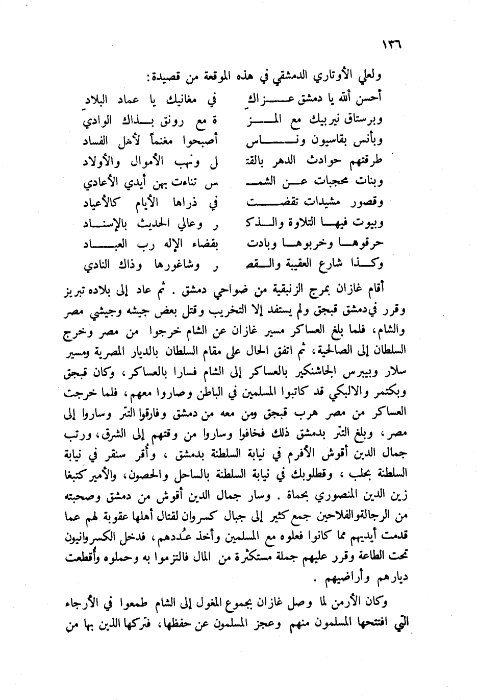 ولعلي الأوتاري الدمشقي في هذه الموقعة من قصيدة: