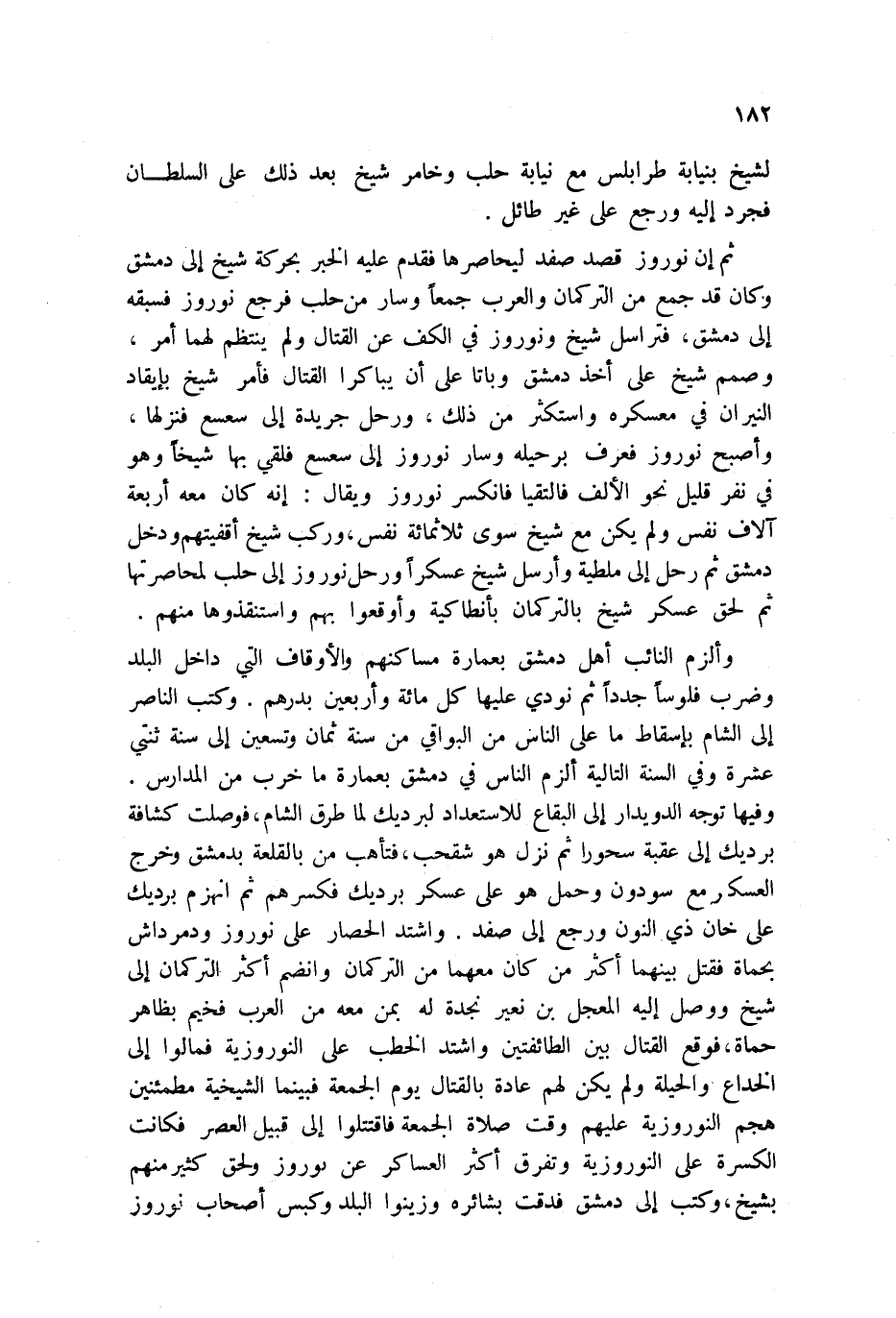 ولحق كثير منهم بشيخ، وكتب إلى دمشق فدقت بشائره وزينوا البلد وكبس أصحاب نوروز