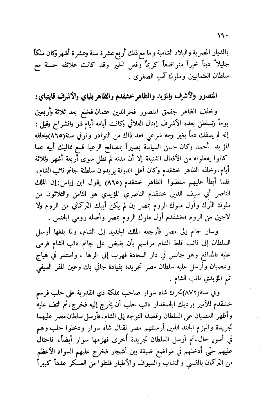 بالديار المصرية والبلاد الشامية وما مع ذلك أربع عشرة سنة وعشرة أشهر وكان ملكاً جليلاً ديناً خيراً متواضعاً كريماً وفعل الخير وقد كانت علائقه حسنة مع سلطان العثمانيين وملوك آسيا الصغرى.