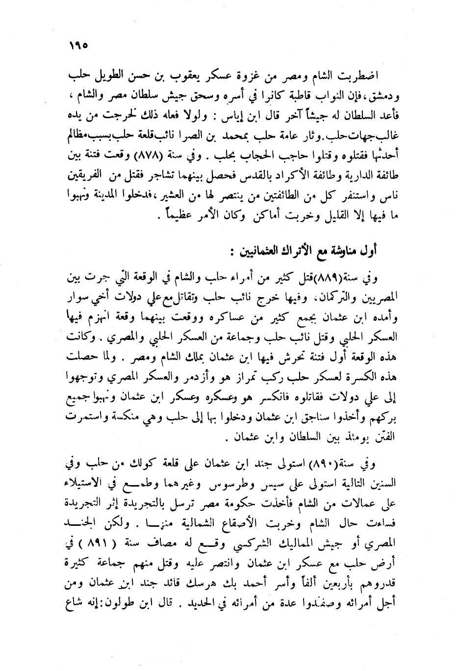 وفي سنة 890 استولى جند ابن عثمان على قلعة كولك من حلب وفي السنين التالية استولى على سيس وطرسوس وغيرهما وطمع في الاستيلاء على عمالات من الشام فأخذت حكومة مصر ترسل بالتجريدة إثر التجريدة فساءت حال الشام وخربت الأصقاع الشمالية منها. ولكن الجند المصري أو جيش المماليك الشركسي وقع له مصاف سنة 891 في أرض حلب مع عسكر ابن عثمان وانتصر عليه وقتل منهم جماعة كثيرة قدروهم بأربعين ألفاً وأسر أحمد بك هرسك قائد جند ابن عثمان ومن أجل أمرائه وصفدوا عدة من أمرائه في الحديد. قال ابن طولون: إنه شاع