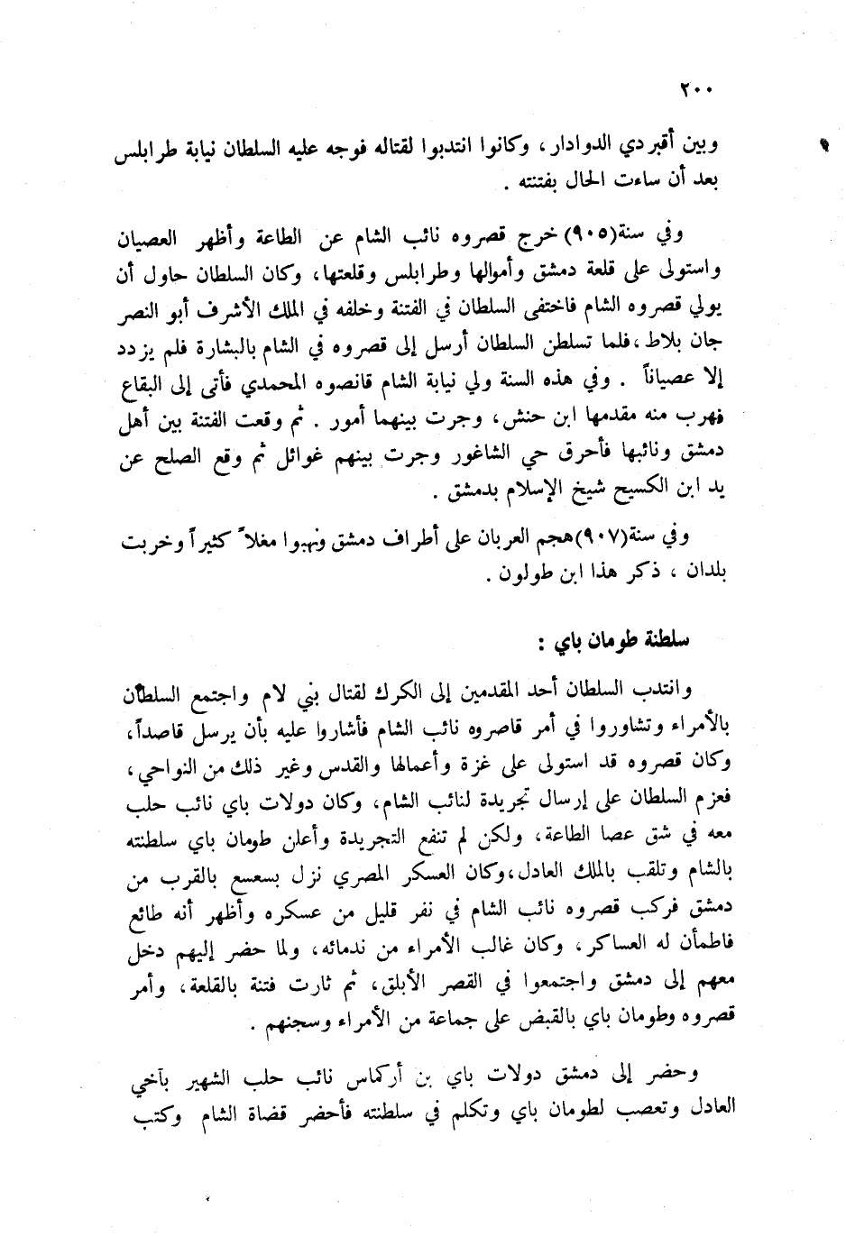 وفي سنة 907 هجم العربان على أطراف دمشق ونهبوا مغلاً كثيراً وخربت بلدان، ذكر هذا ابن طولون.