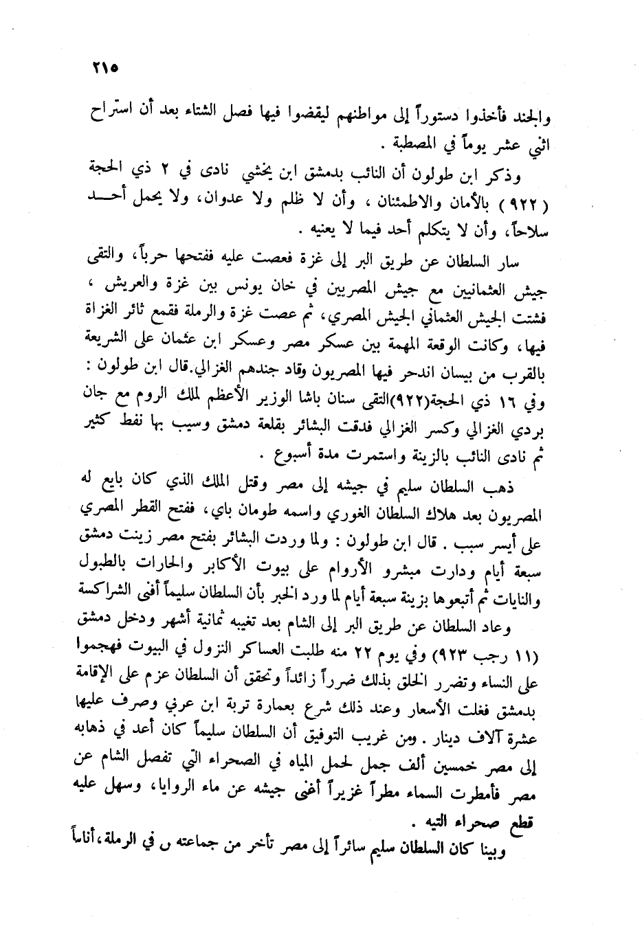 وبينا كان السلطان سليم سائراً إلى مصر تأخر من جماعته من في الرملة، أناساً