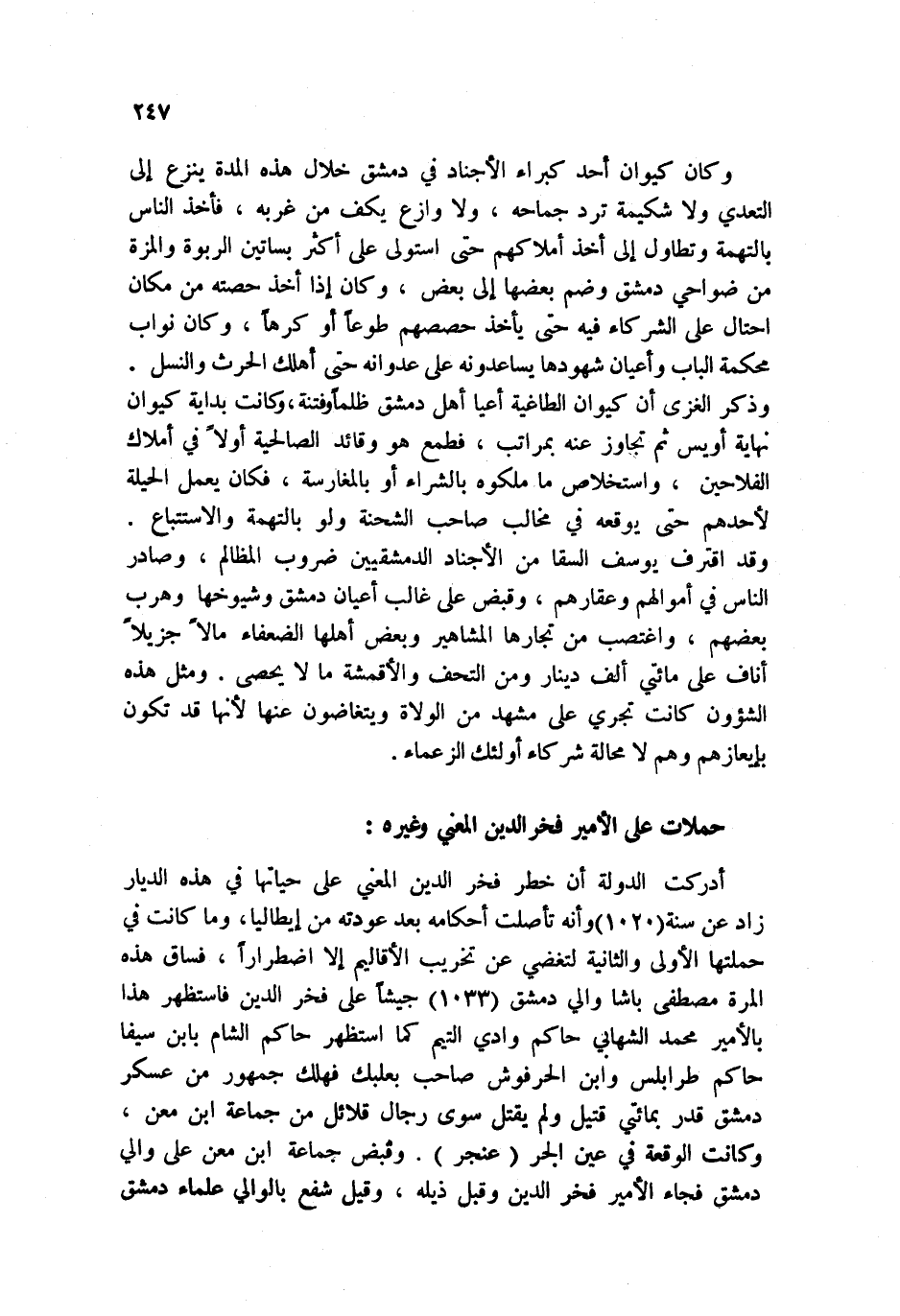 يحصى. ومثل هذه الشؤون كانت تجري على مشهد من الولاة ويتغاضون عنها لأنها قد تكون بإيعازهم وهم لا محالة شركاء أولئك الزعماء.