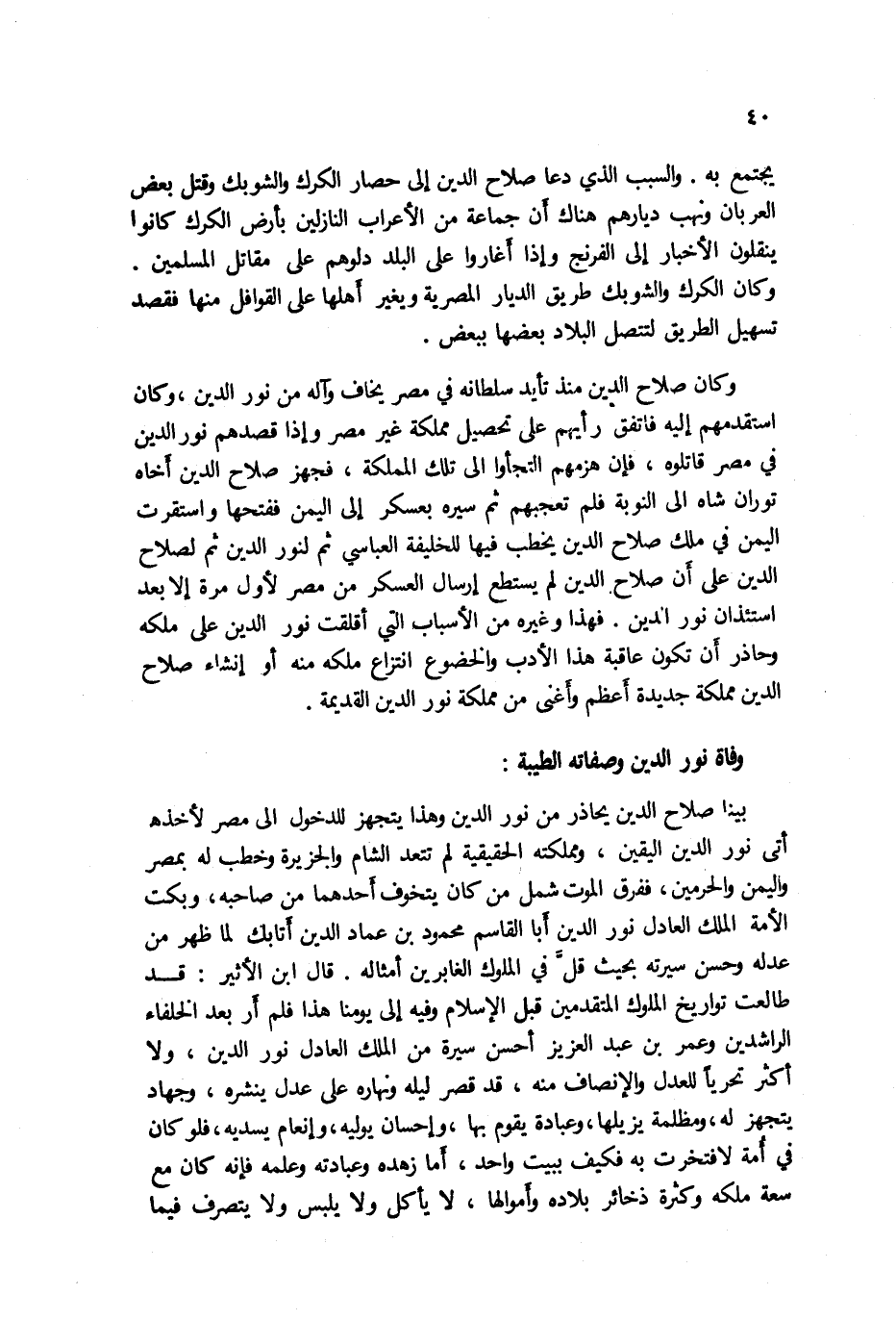 بينا صلاح الدين يحاذر من نور الدين وهذا يتجهز للدخول إلى مصر لأخذه أتى نور الدين اليقين، ومملكته الحقيقية لم تتعد الشام والجزيرة وخطب له بمصر واليمن والحرمين، ففرق الموت شمل من كان يتخوف أحدهما من صاحبه، وبكت الأمة الملك العادل نور الدين أبا القاسم محمود بن عماد الدين أتابك لما ظهر من عدله وحسن سيرته بحيث قلَّ في الملوك الغابرين أمثاله. قال ابن الأثير: قد طالعت تواريخ الملوك المتقدمين قبل الإسلام وفيه إلى يومنا هذا فلم أر بعد الخلفاء الراشدين وعمر بن عبد العزيز أحسن سيرة من الملك العادل نور الدين،