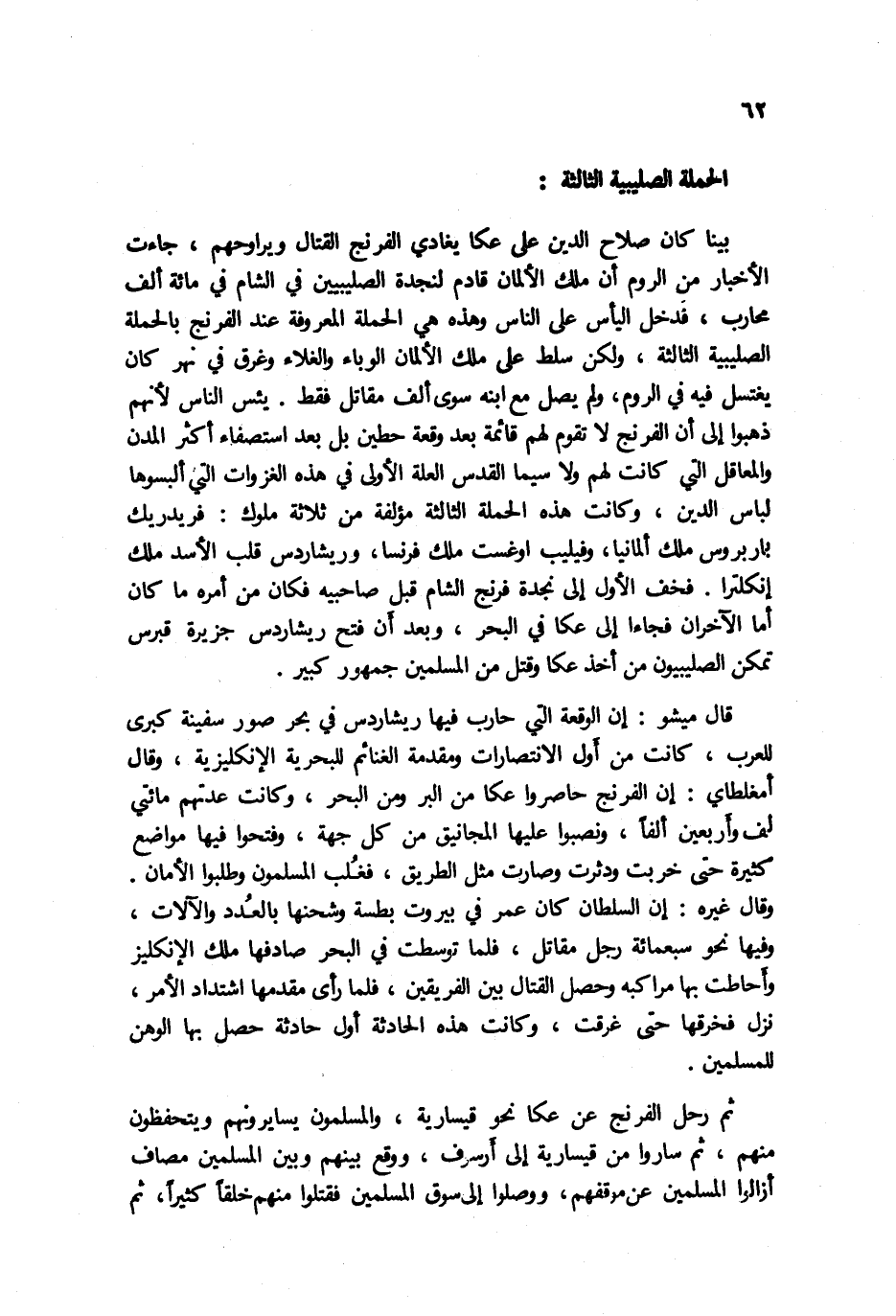 قال ميشو: إن الوقعة التي حارب فيها ريشردس في بحر صور سفينة كبرى للعرب، كانت من أول الانتصارات ومقدمة الغنائم للبحرية الإنكليزية، وقال أمغلطاي: إن الفرنج حاصروا عكا من البر ومن البحر، وكانت عدتهم مائتي ألف وأربعين ألفاً، ونصبوا عليها المجانيق من كل جهة، وفتحوا فيها مواضع كثيرة حتى خربت ودثرت وصارت مثل الطريق، فغُلب المسلمون وطلبوا الأمان. وقال غيره: إن السلطان كان عمر في بيروت بطسة وشحنها بالعُدد والآلات، وفيها نحو سبعمائة رجل مقاتل، فلما توسطت في البحر صادفها ملك الإنكليز وأحاطت بها مراكبه وحصل القتال بين الفريقين، فلما رأى مقدمها اشتداد الأمر، نزل فخرقها حتى غرقت، وكانت هذه الحادثة أول حادثة حصل بها الوهن للمسلمين.