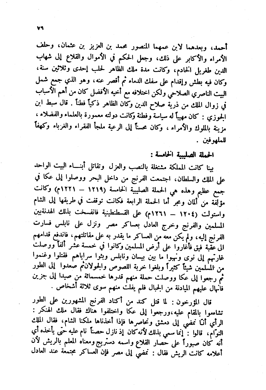 بينا كانت المملكة مشتغلة بالنصب والغزل وتقاتل أبناء البيت الواحد على الملك والسلطان، اجتمعت الفرنج من داخل البحر ووصلوا إلى عكا في جمع عظيم وهذه هي الحملة الصليبية الخامسة 1219 - 1221م وكانت مؤلفة من ألمان ومجر أما الحملة الرابعة فكانت توقفت في طريقها إلى الشام واستولت 1204 - 1261م على القسطنطينية فانفسخت بذلك الهدنة بين المسلمين والفرنج وخرج العادل بعساكر مصر ونزل على نابلس فسارت الفرنج إليه، ولم يكن معه من العساكر ما يقدر به على مقاتلتهم، فاندفع قدامهم إلى عقبة فيق فأغاروا على أرض المسلمين وكانوا في خمسة عشر ألفاً ووصلت غارتهم إلى نوى ونهبوا ما بين بيسان ونابلس وبثوا سراياهم فقتلوا وغنموا من المسلمين شيئاً كثيراً وبلغوا خربة اللصوص والجولان ثم صعدوا إلى الطور ثم رجعوا إلى عكا ووصلت حملة منهم قدرها خمسمائة من صيدا إلى جزين فانهال عليهم الميادنة من الجبال فلم يفلت منهم سوى ثلاثة أشخاص.