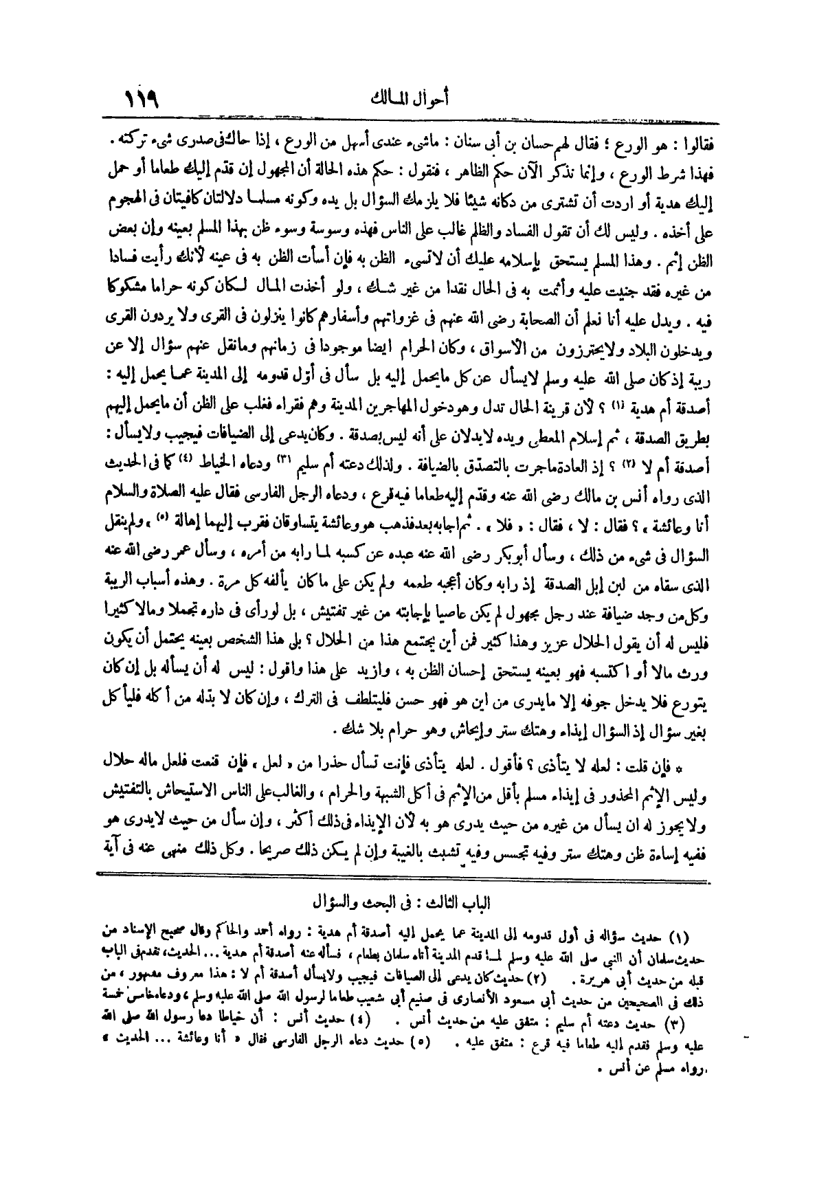 ويدل عليه أنا نعلم ان الصحابة رضي الله عنهم في غزواتهم واسفارهم كانوا ينزلون في القرى ولا يردون القرى ويدخلون البلاد ولا يحترزون من الأسواق وكان الحرام أيضاً موجوداً في زمانهم وما نقل عنهم سؤال إلا عن ريبة إذ كان صلى الله عليه وسلم لا يسأل عن كل ما يحمل إليه بل سأل في أول قدومه إلى المدينة عما يحمل إليه أصدقة أم هدية (¬1)