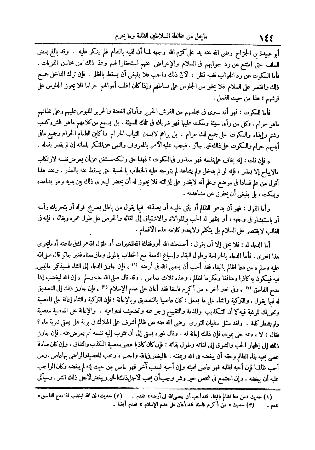 (¬1) حديث من دعا لظالم بالبقاء فقد أحب أن يعصي الله في أرضه تقدم