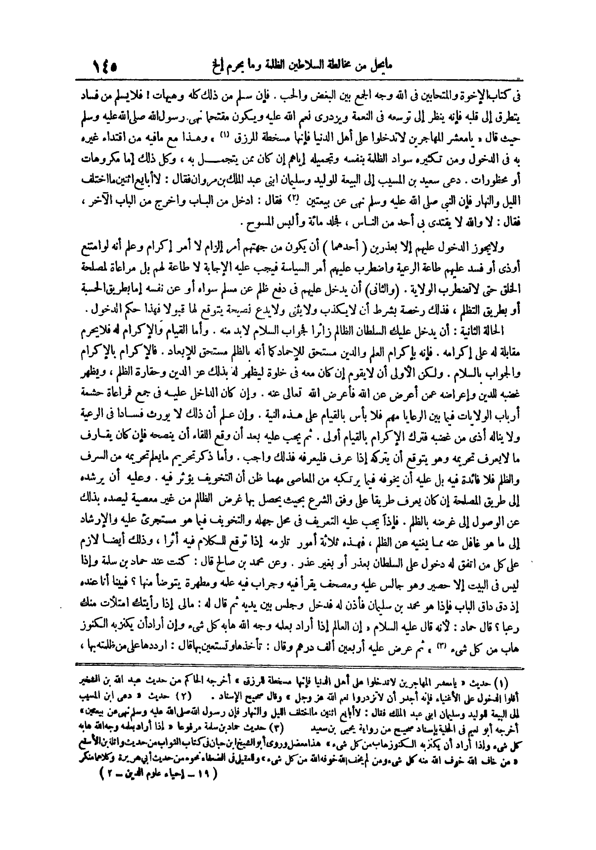 فإذاً يجب عليه التعريف في محل جهله والتخويف فيما هو مستجرئ عليه والإرشاد إلى ما هو غافل عنه مما يغنيه عن الظلم فهذه ثلاثة أمور تلزمه إذا توقع للكلام فيه أثراً وذلك أيضاً لازم على كل من اتفق له دخول على السلطان بعذر أو بغير عذر