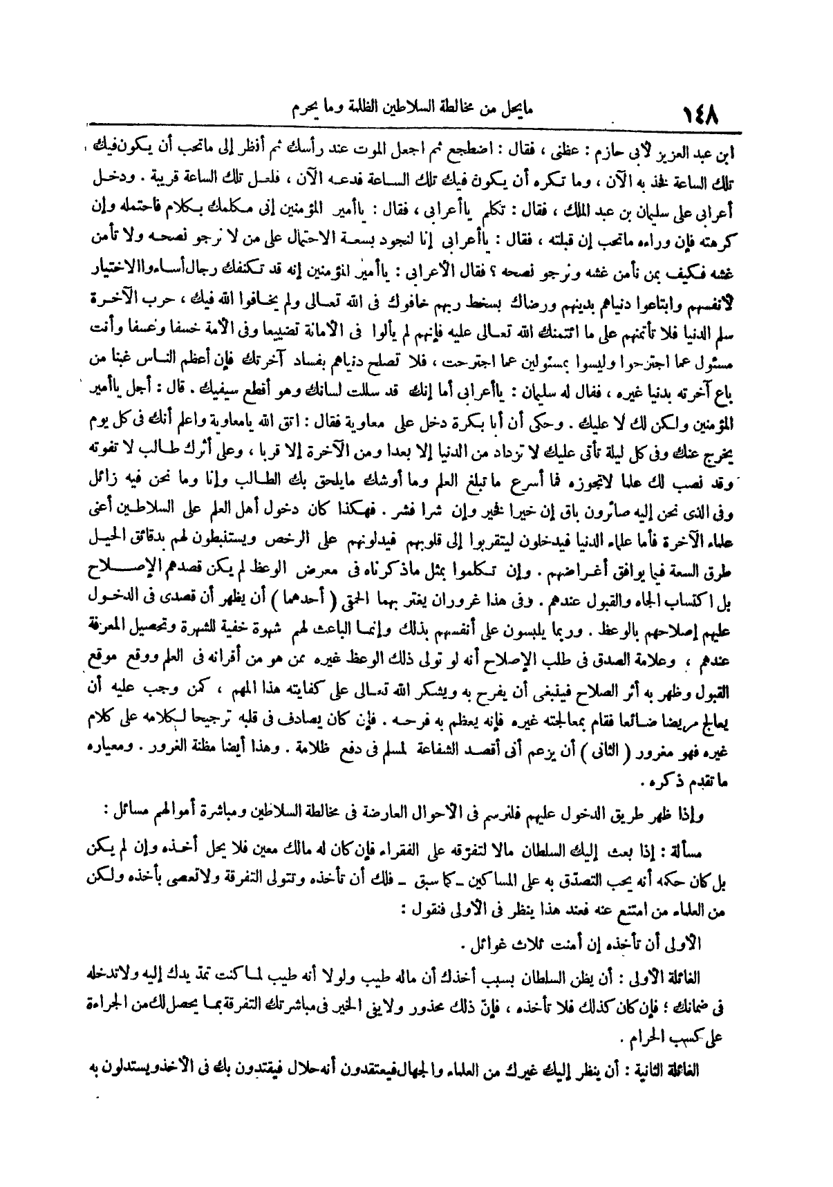 وإذا ظهر طريق الدخول عليهم فلنرسم في الأحوال العارضة في مخالطة السلاطين ومباشرة أموالهم مسائل