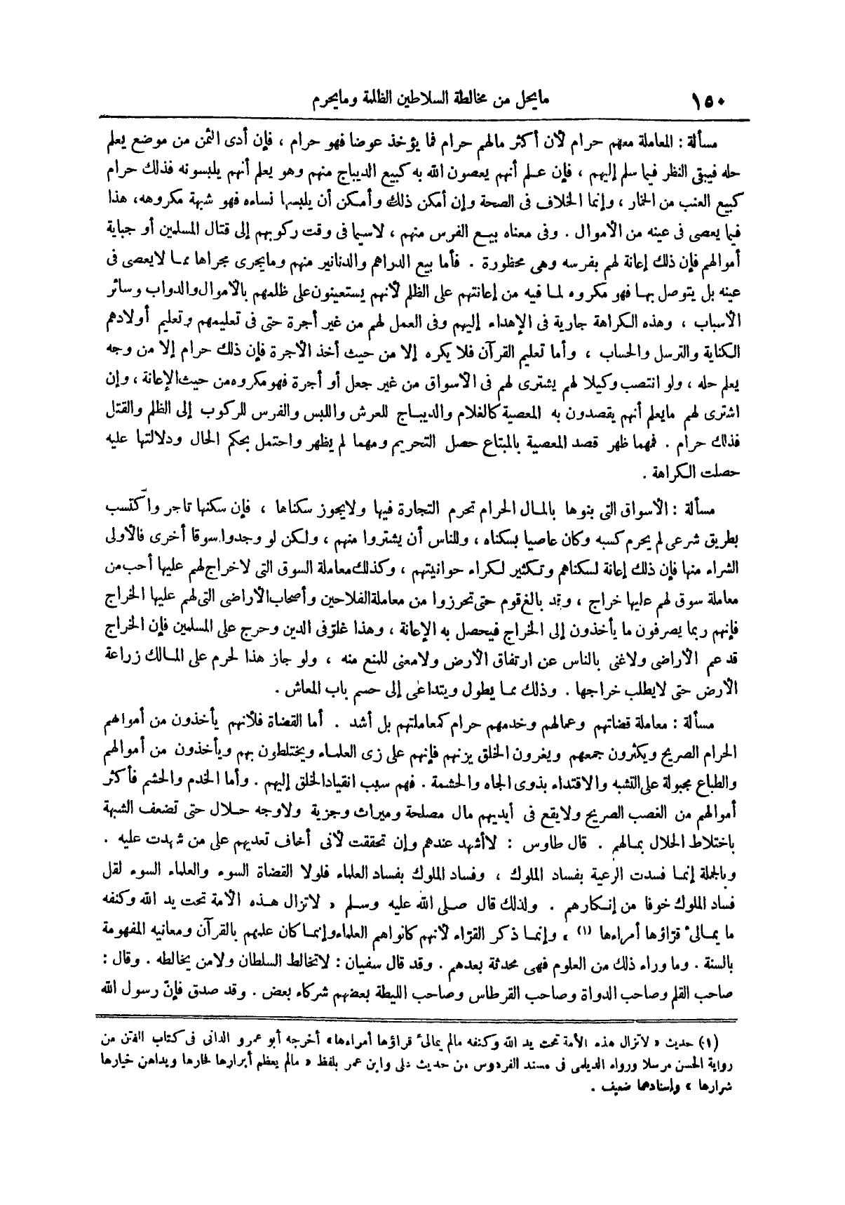 مسألة معاملة قضاتهم وعمالهم وخدمهم حرام كمعاملتهم بل أشد