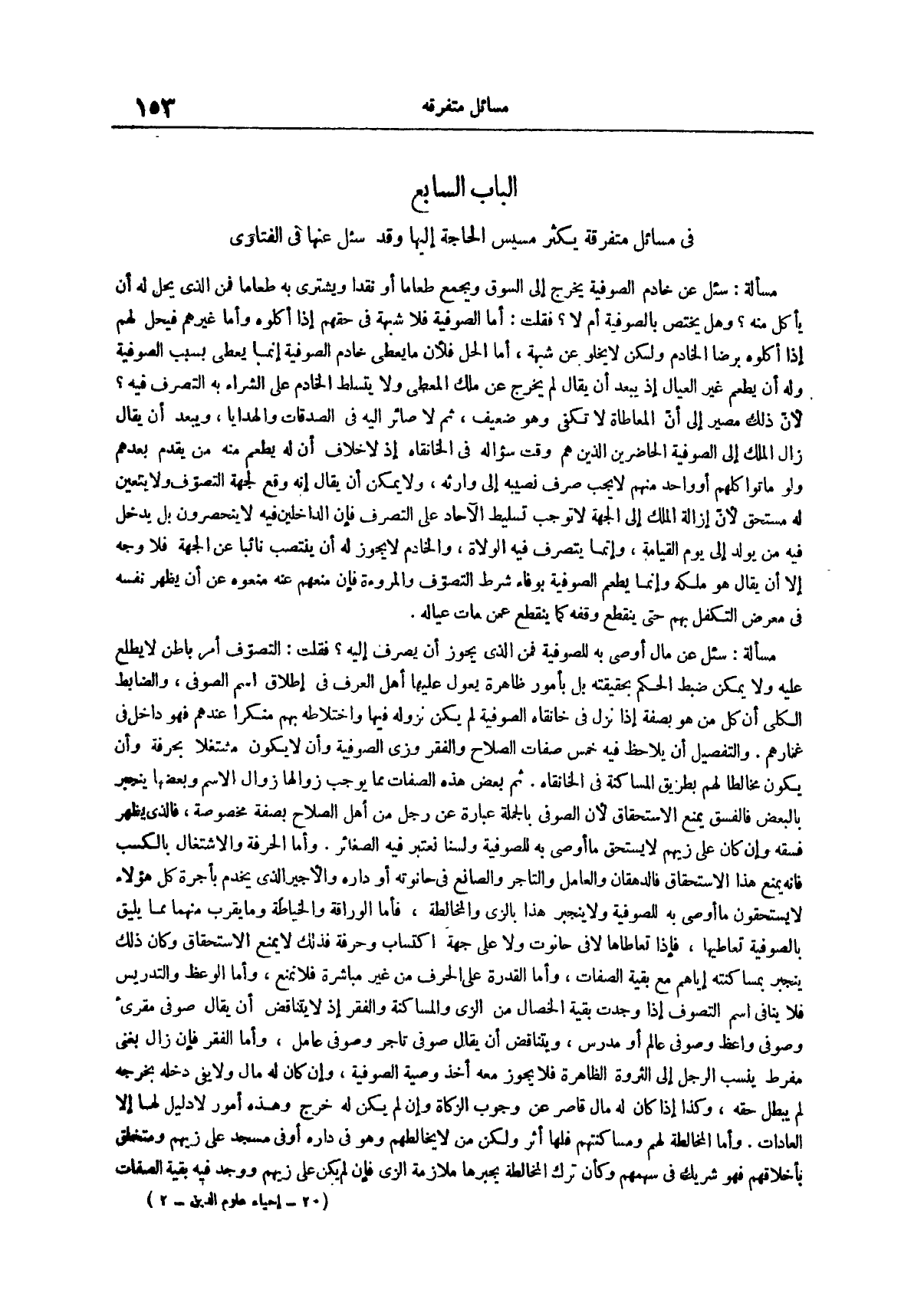 الباب السابع في مسائل متفرقة يكثر مسيس الحاجة إليها وقد سئل عنها