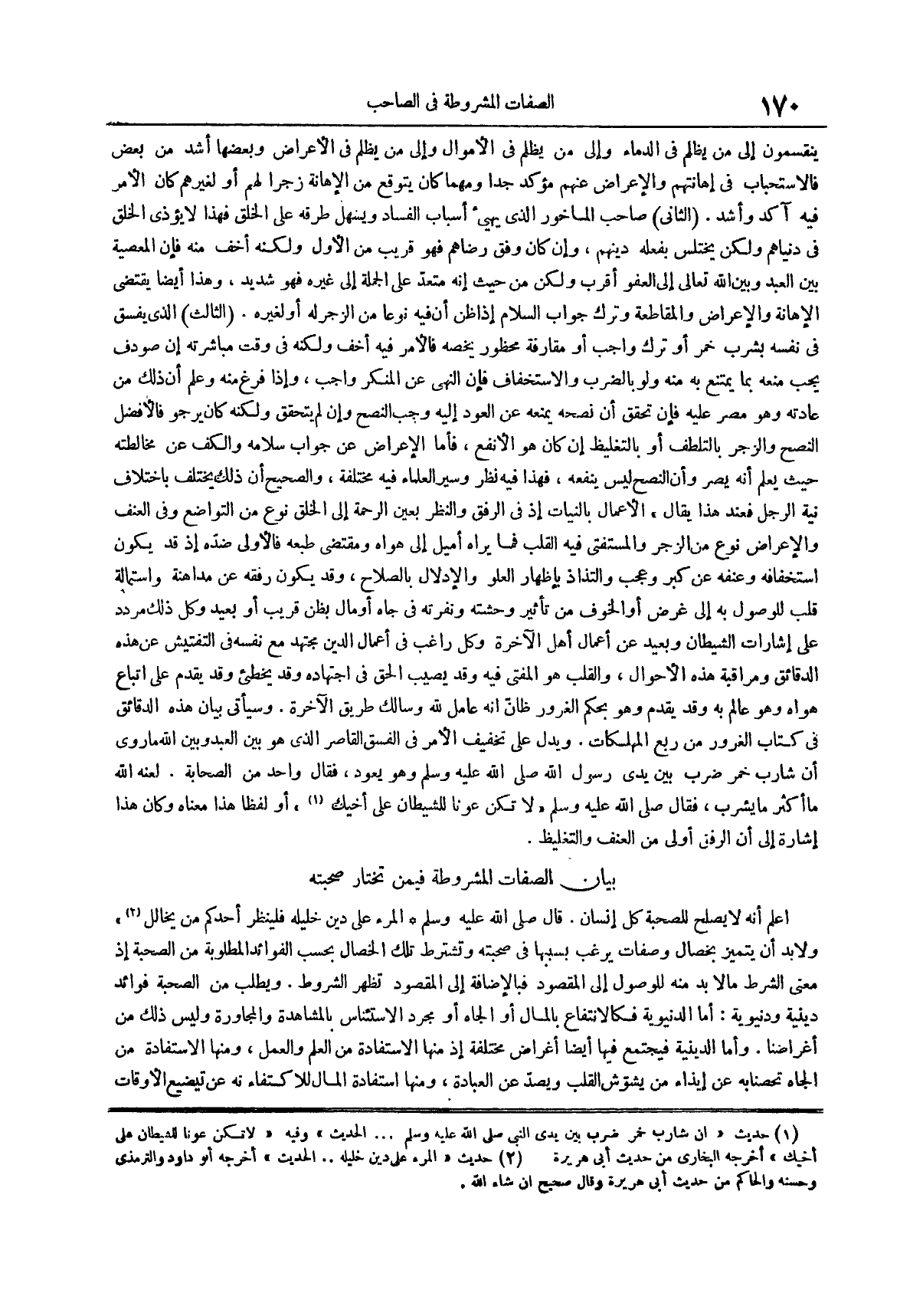بيان الصِّفَاتُ الْمَشْرُوطَةُ فِيمَنْ تَخْتَارُ صُحْبَتَهُ