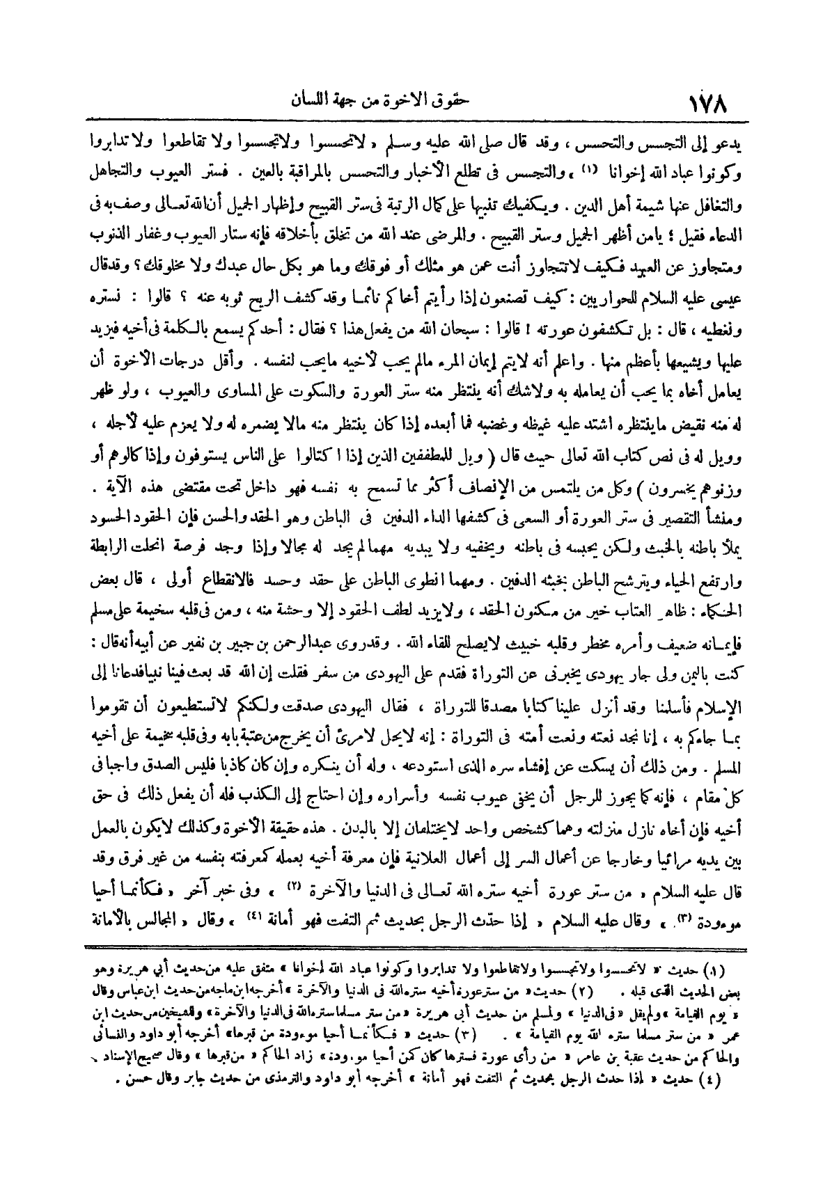 (¬1) حديث لَا تَحَسَّسُوا وَلَا تَجَسَّسُوا وَلَا تَقَاطَعُوا وَلَا تدابروا وكونوا عباد الله إخواناً متفق عليه من حديث أبي هريرة وهو بعض الحديث الذي قبله