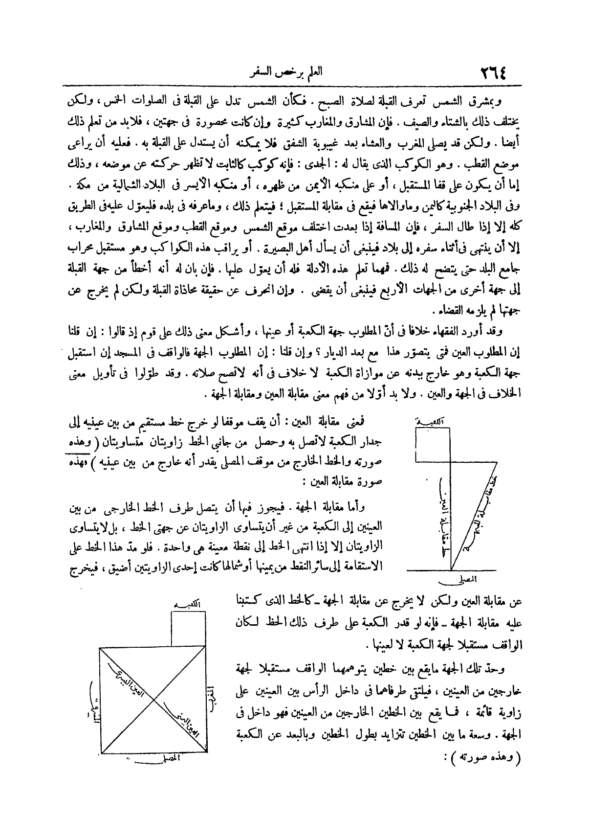 فيجوز فيها أن يتصل طرف الخط الخارجي من بين العينين إلى الكعبة من غير أن يتساوى الزاويتان عن جهتى الخط بل لا يتساوى الزاويتان إلا إذا انتهى الخط إلى نقطة معينة هي واحدة