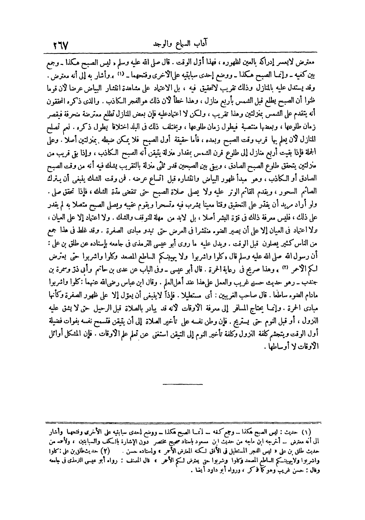ويدل عليه ما روي ابو عيسى الترمذي في جامعه باسناده عن طلق بن علي أن رسول الله صلى الله عليه وسلم قال كلوا واشربوا ولا يهيبنكم الساطع المصعد وكلوا واشربوا حتى يعترض لكم الأحمر (¬2)