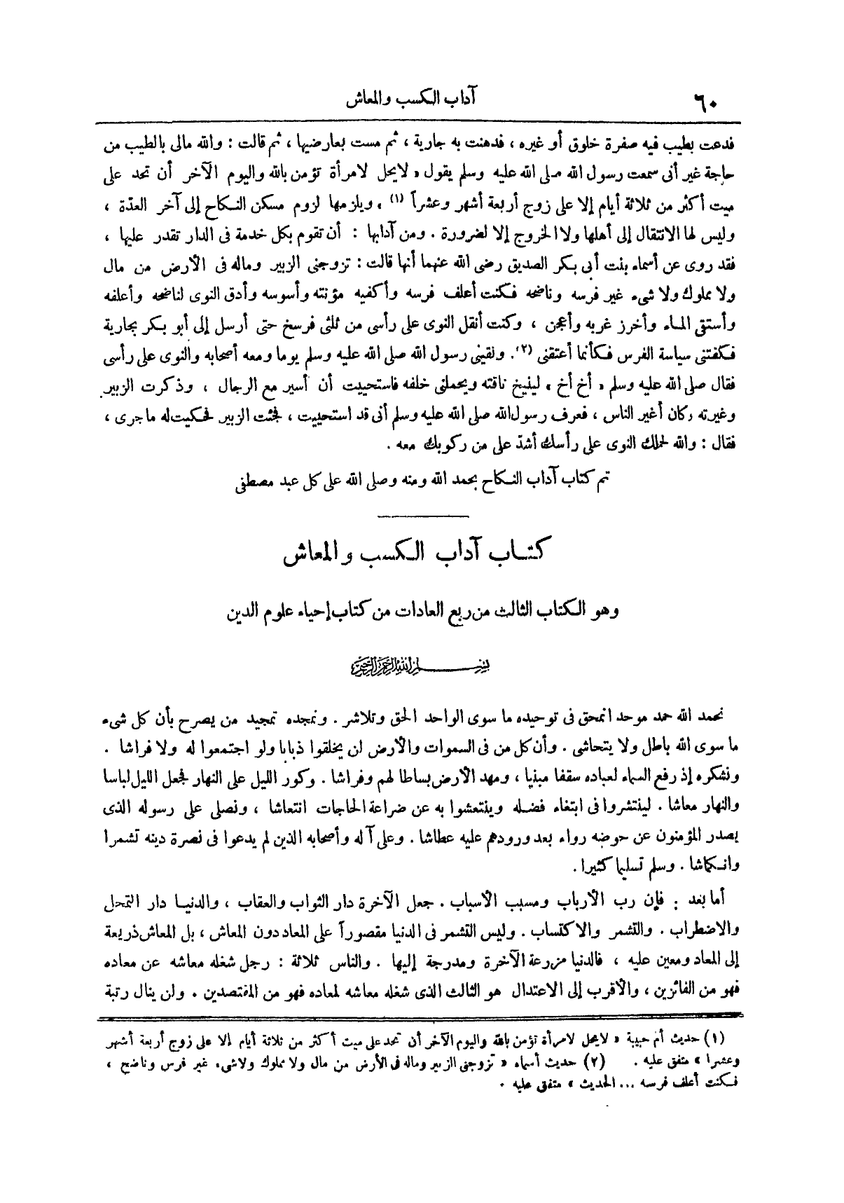 تم كتاب آداب النكاح بحمد الله ومنه وصلى الله على كل عبد مصطفى كتاب آداب الكسب والمعاش وهو الكتاب الثالث من ربع العادات من كتاب إحياء علوم الدين