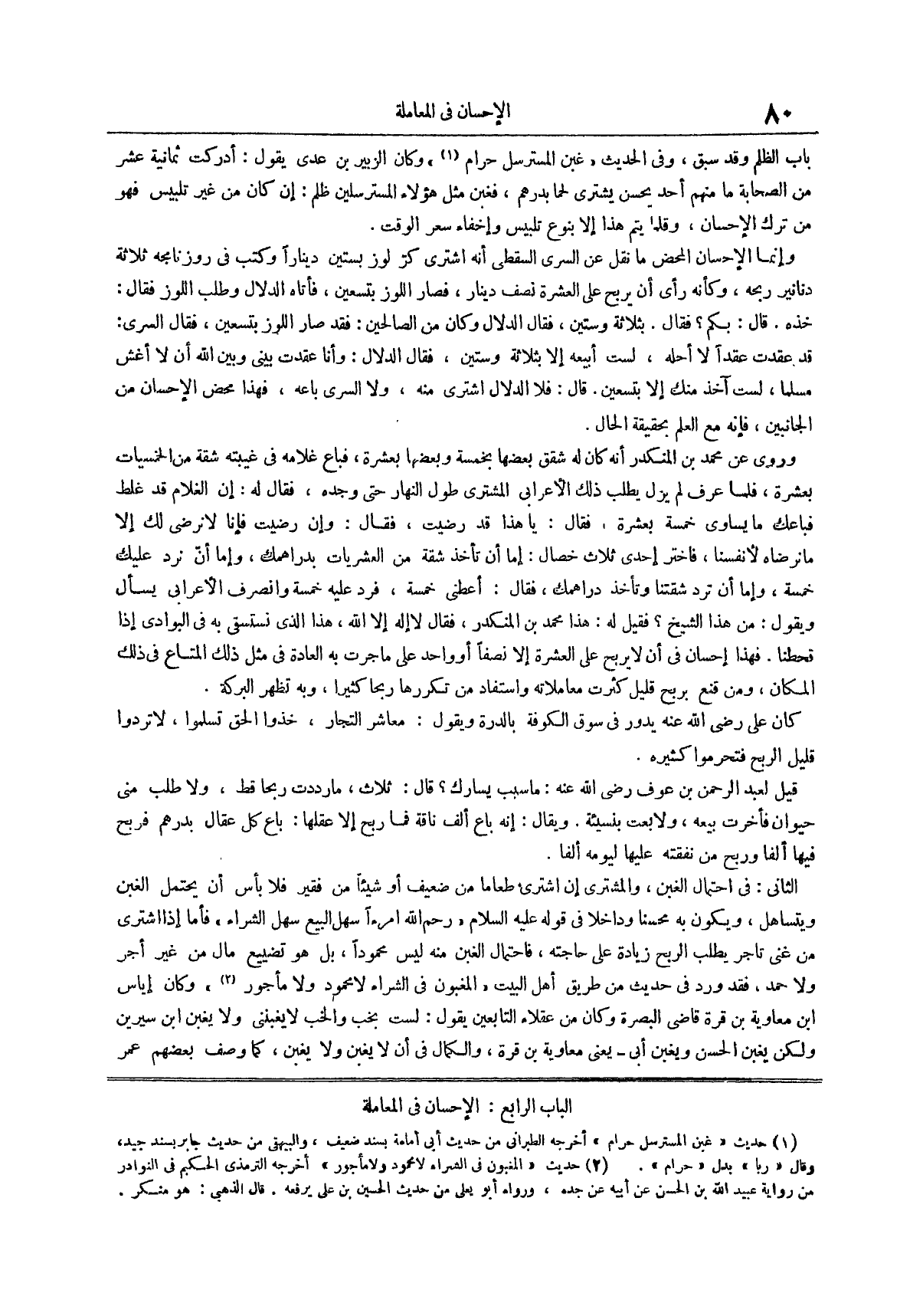 وكان الزبير بن عدي يقول أدركت ثمانية عشر من الصحابة ما منهم أحد يحسن يشتري لحماً بدرهم فغبن مثل هؤلاء المسترسلين ظلم إن كان من غير تلبيس فهو من ترك الإحسان وقلما يتم هذا إلا بنوع تلبيس وإخفاء سعر الوقت