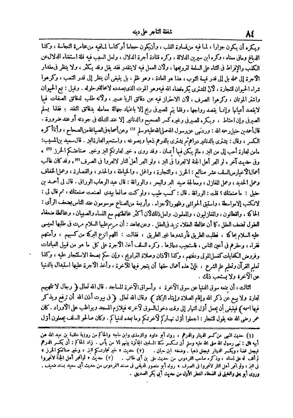 الثالث أن يَمْنَعَهُ سُوقُ الدُّنْيَا عَنْ سُوقِ الْآخِرَةِ وَأَسْوَاقُ الْآخِرَةِ الْمَسَاجِدُ