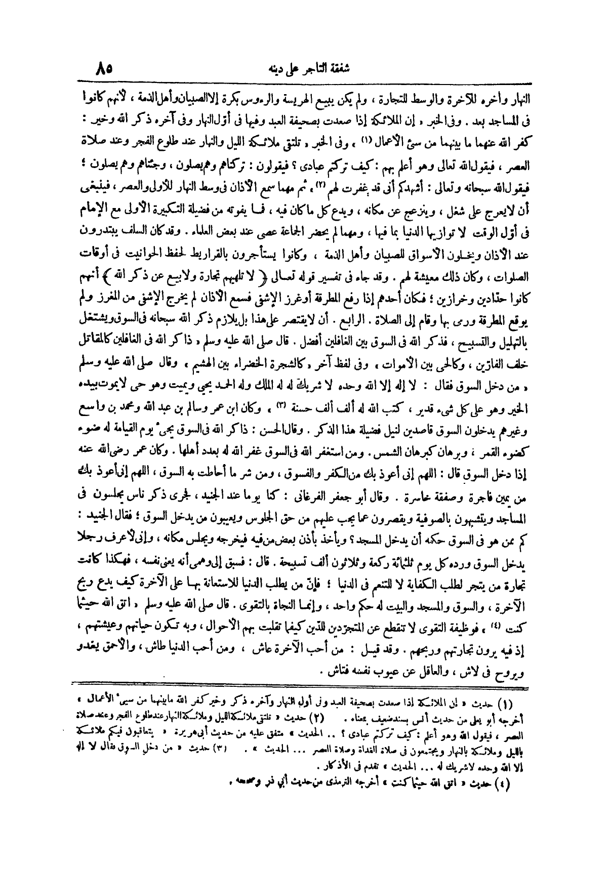 الرَّابِعُ أَنْ لَا يَقْتَصِرَ عَلَى هَذَا بَلْ يُلَازِمَ ذِكْرَ اللَّهِ سُبْحَانَهُ فِي السُّوقِ وَيَشْتَغِلَ بِالتَّهْلِيلِ وَالتَّسْبِيحِ فَذِكْرُ اللَّهِ فِي السُّوقِ بَيْنَ الغافلين أفضل