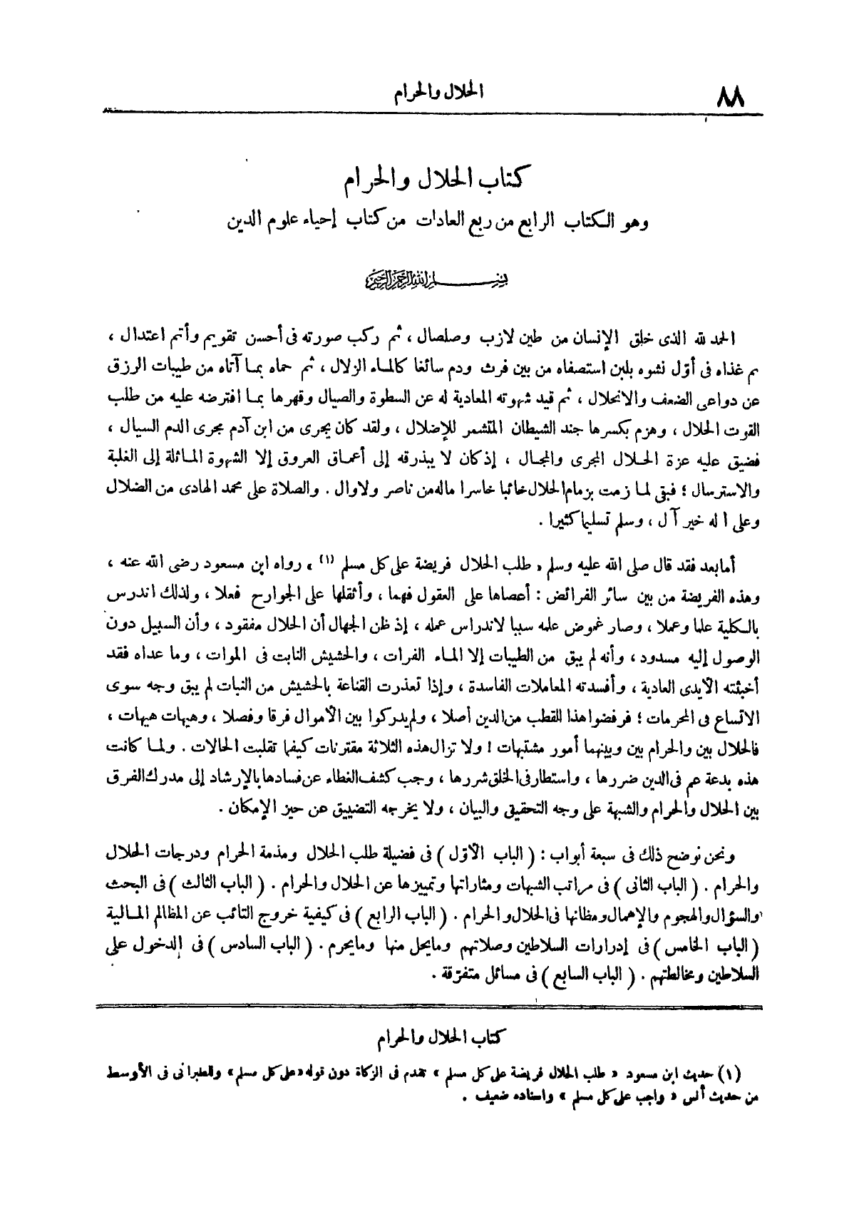 كتاب الحلال والحرام وهو الكتاب الرابع من ربع العادات من كتاب إحياء علوم الدين