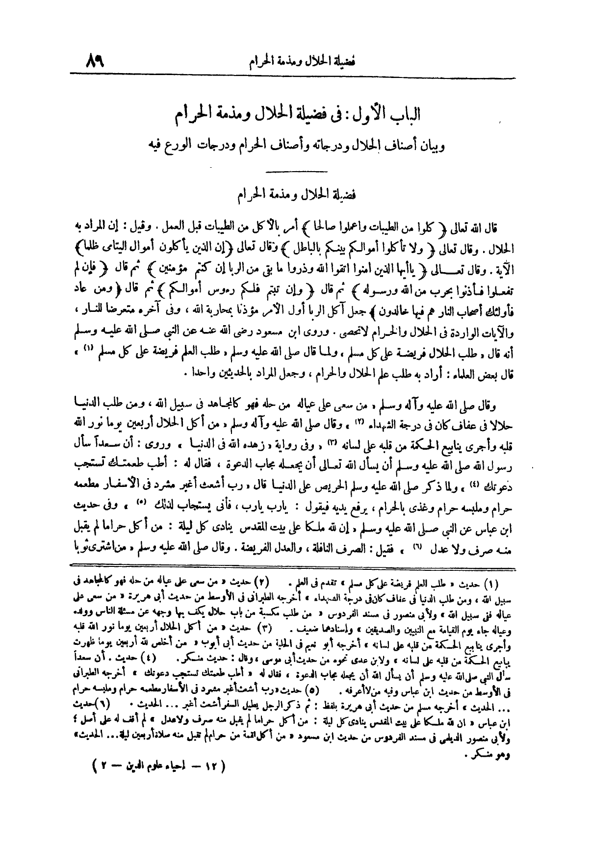 وبيان أصناف الحلال ودرجاته وأصناف الحرام ودرجات الورع فيه فَضِيلَةُ الْحَلَالِ وَمَذَمَّةُ الْحَرَامِ