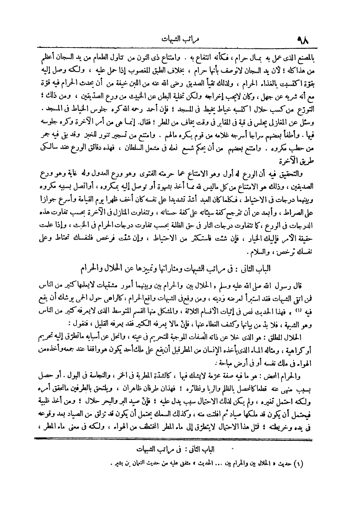 الباب الثاني في مراتب الشبهات ومثاراتها وتمييزها عن الحلال والحرام
