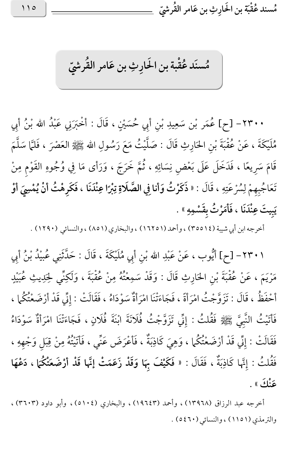 مُسند عُقْبَة بن الحَارِثِ بن عَامر القُرشيّ
