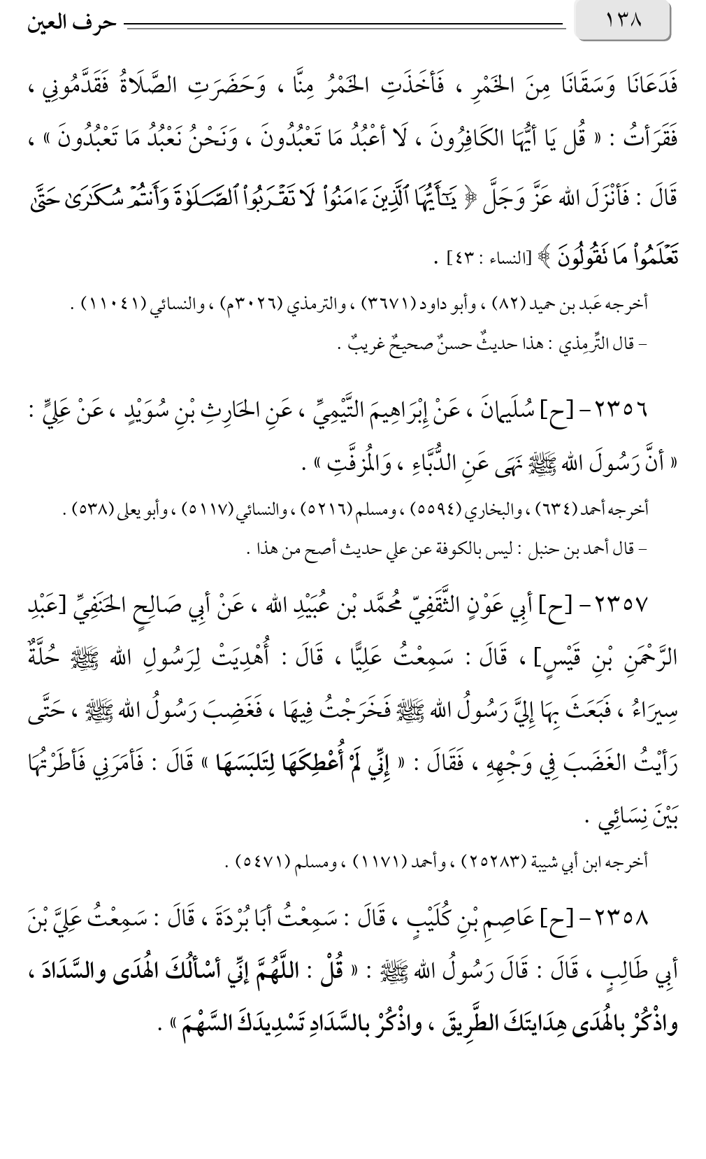 ٢٣٥٦ - [ح] سُلَيمانَ، عَنْ إِبْرَاهِيمَ التَّيْمِيِّ، عَنِ الحَارِثِ بْنِ سُوَيْدٍ، عَنْ عَلِيٍّ: «أنَّ رَسُولَ الله صلى الله عليه وسلم نَهَى عَنِ الدُّبَّاءِ، وَالمُزفَّتِ».