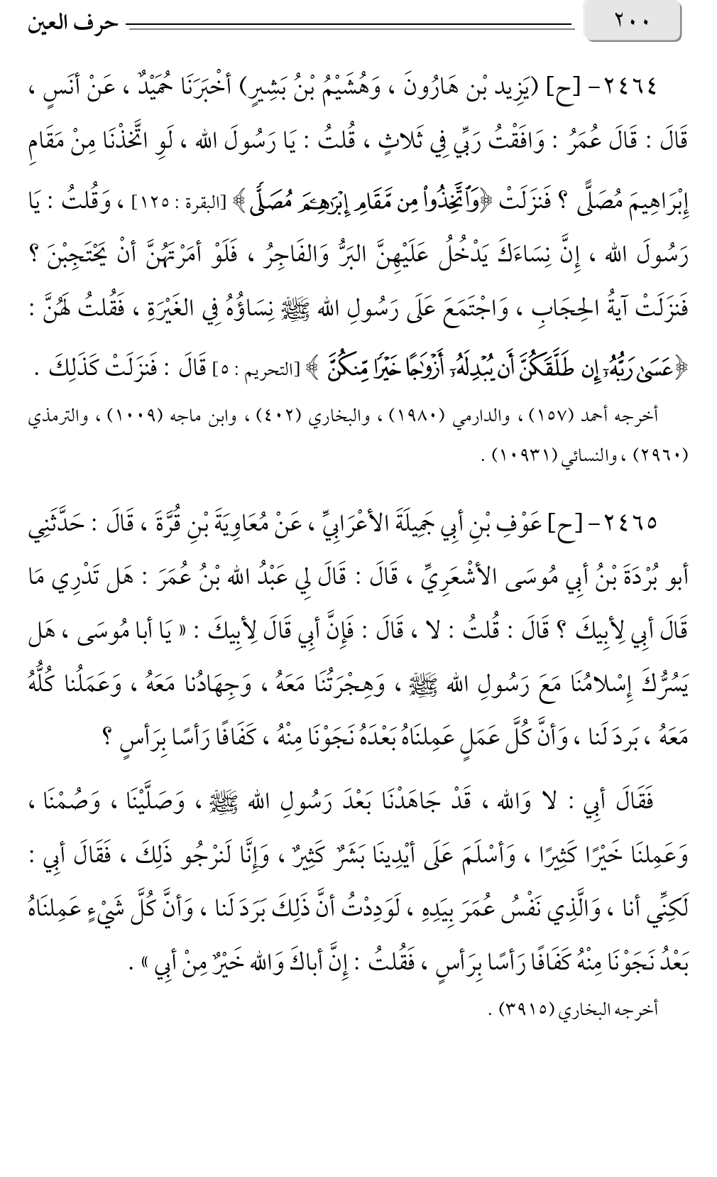 ٢٤٦٤ - [ح] (يَزِيد بْن هَارُونَ، وَهُشَيْمُ بْنُ بَشِيرٍ) أخْبَرَنَا حُمَيْدٌ، عَنْ أنَسٍ،
