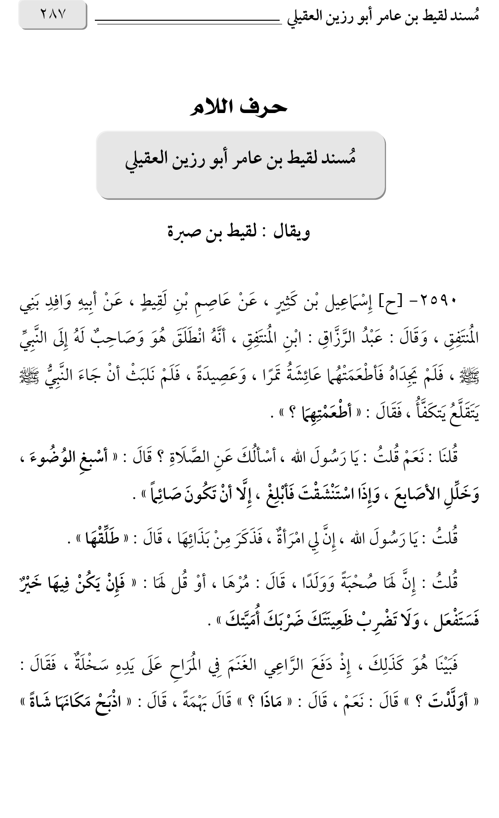 مُسند لقيط بن عامر أبو رزين العقيلي